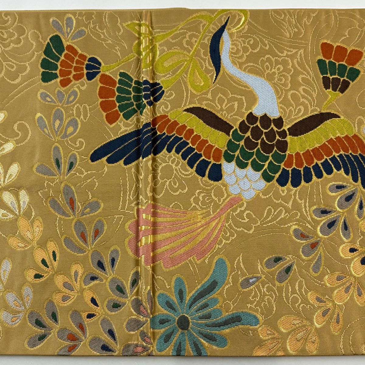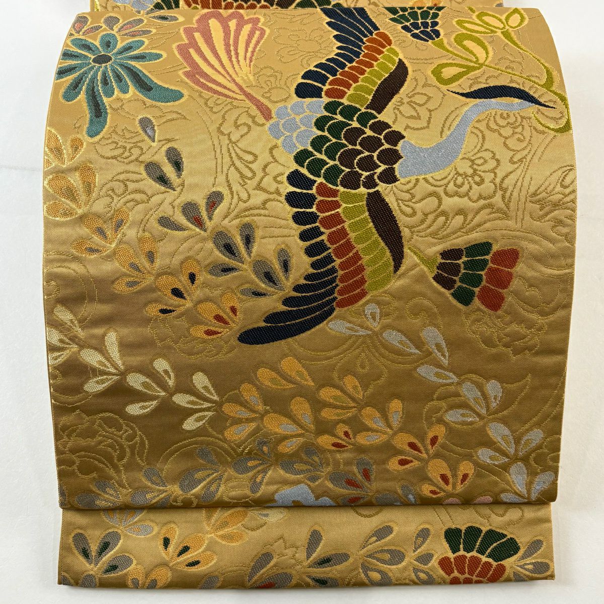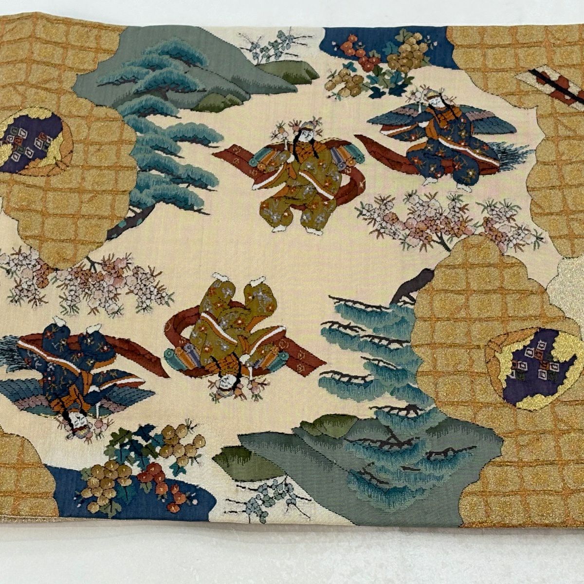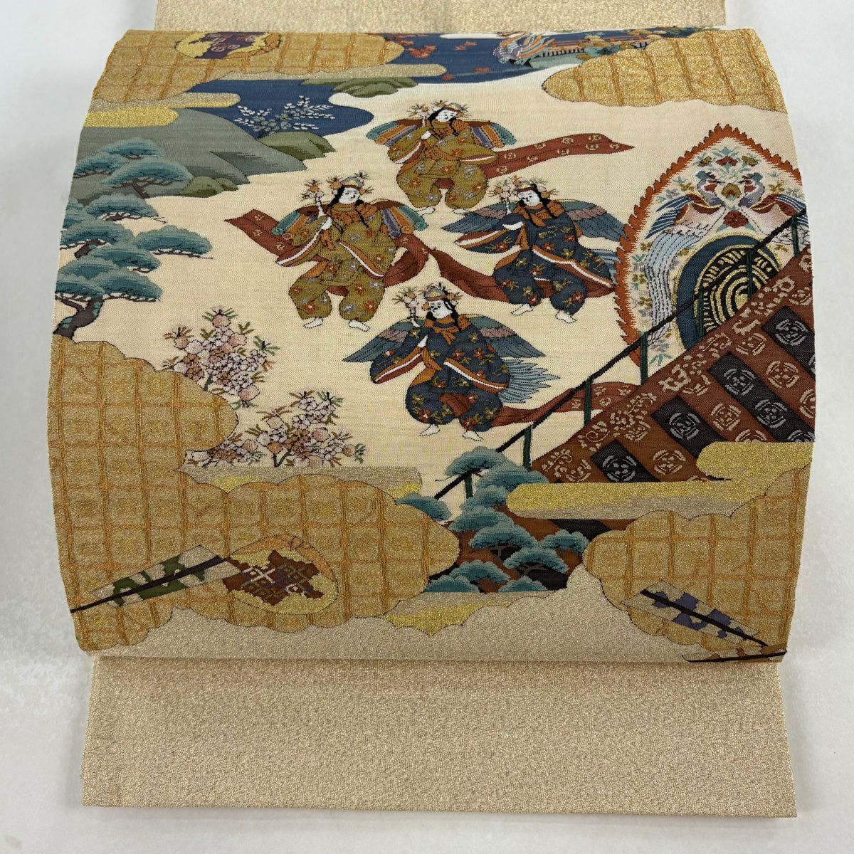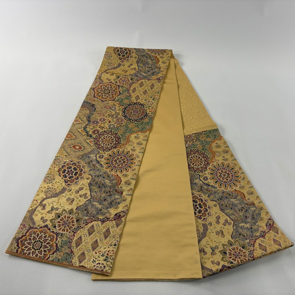 袋帯 逸品 菊 束ね熨斗 金糸 綴れ ベージュ お太鼓柄 正絹