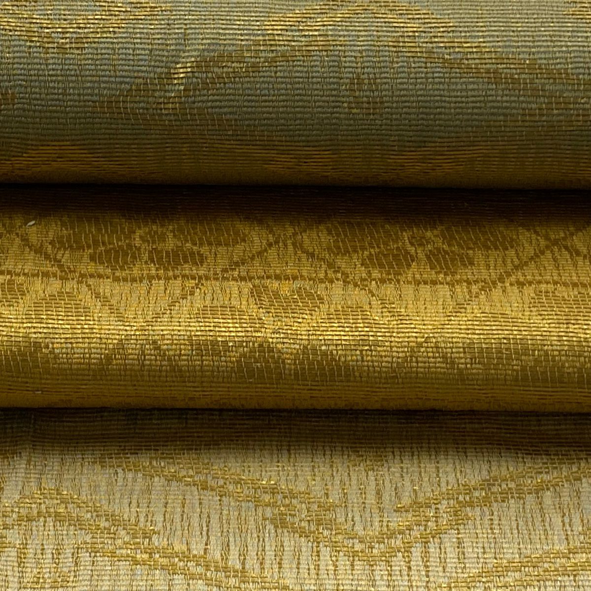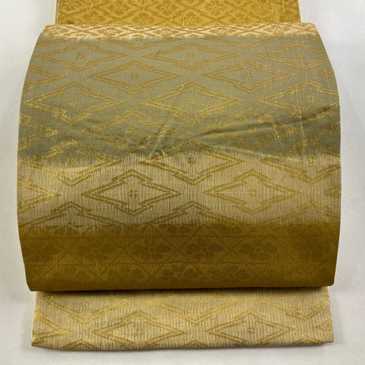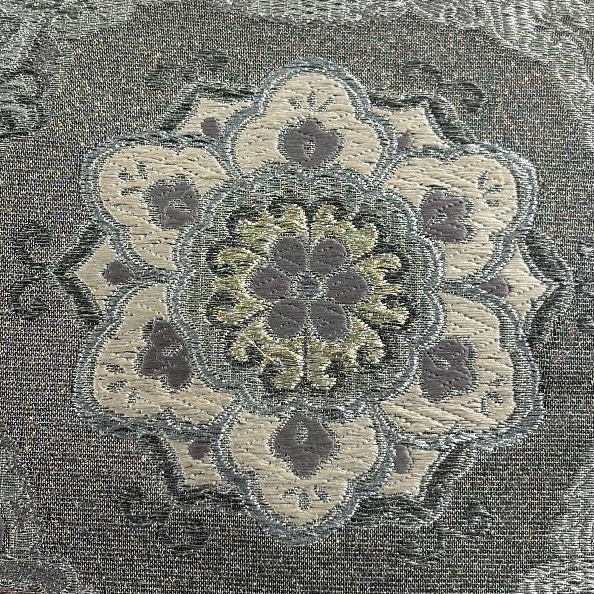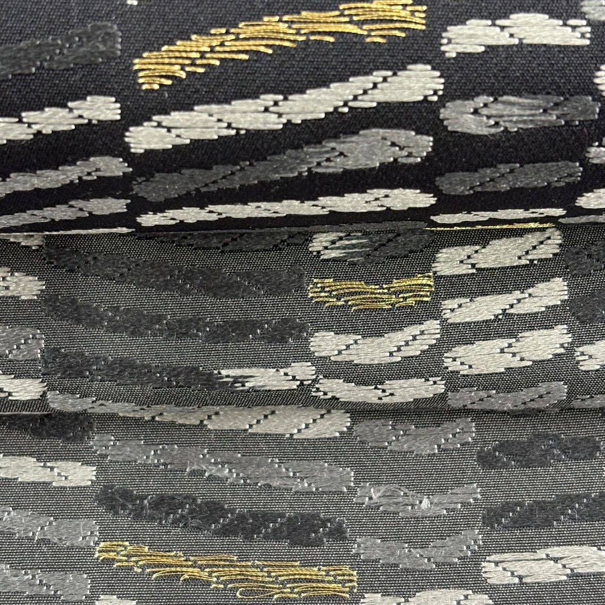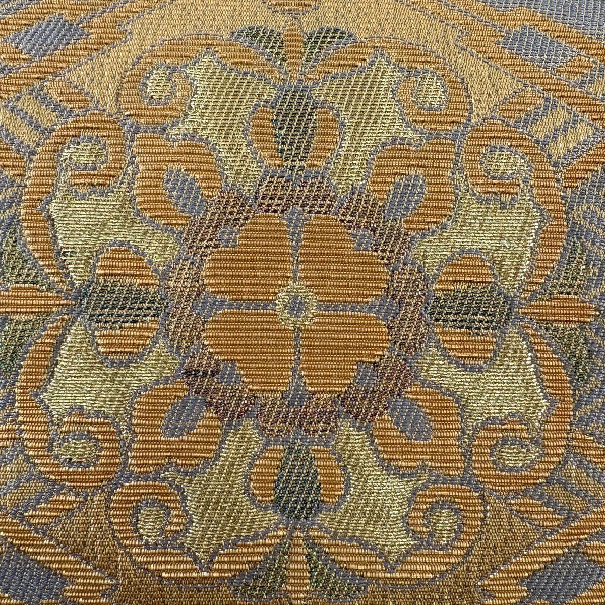 【美品】 袋帯 逸品 華文 紗綾形 金糸 箔 灰色 お太鼓柄 正絹
