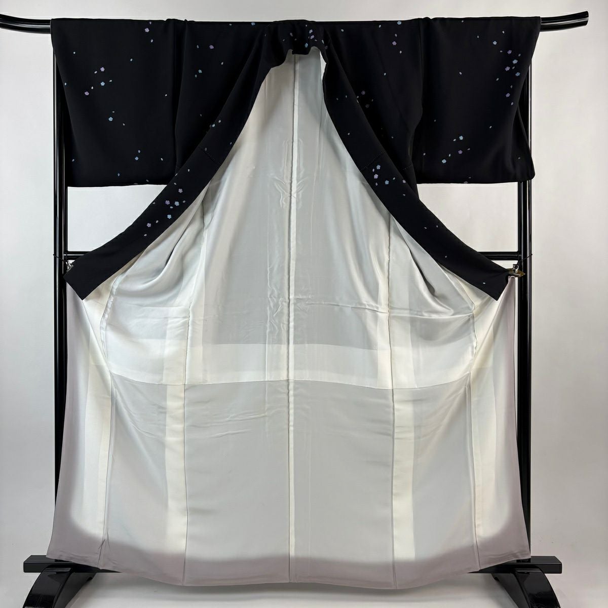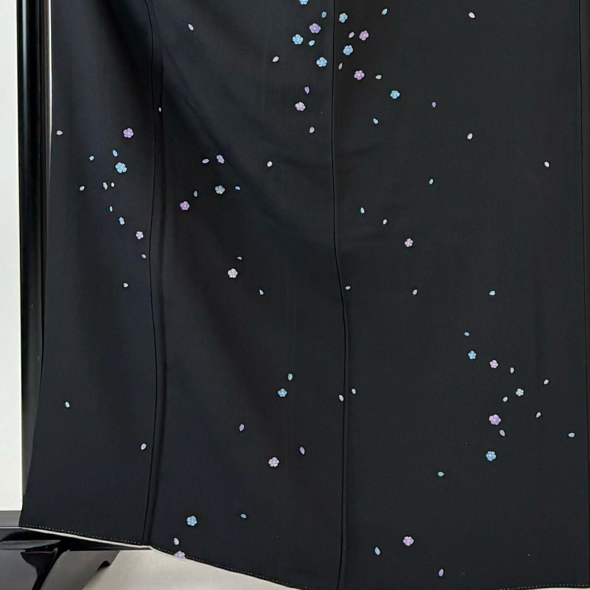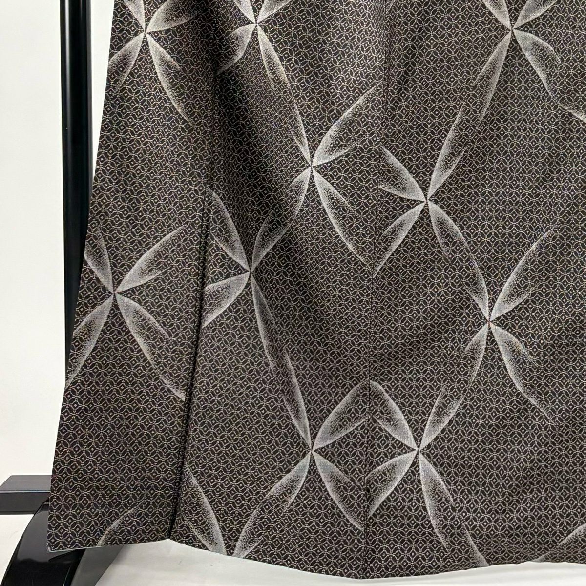 小紋 身丈165cm 裄丈69cm L 袷 花 花びら 黒 正絹 逸品