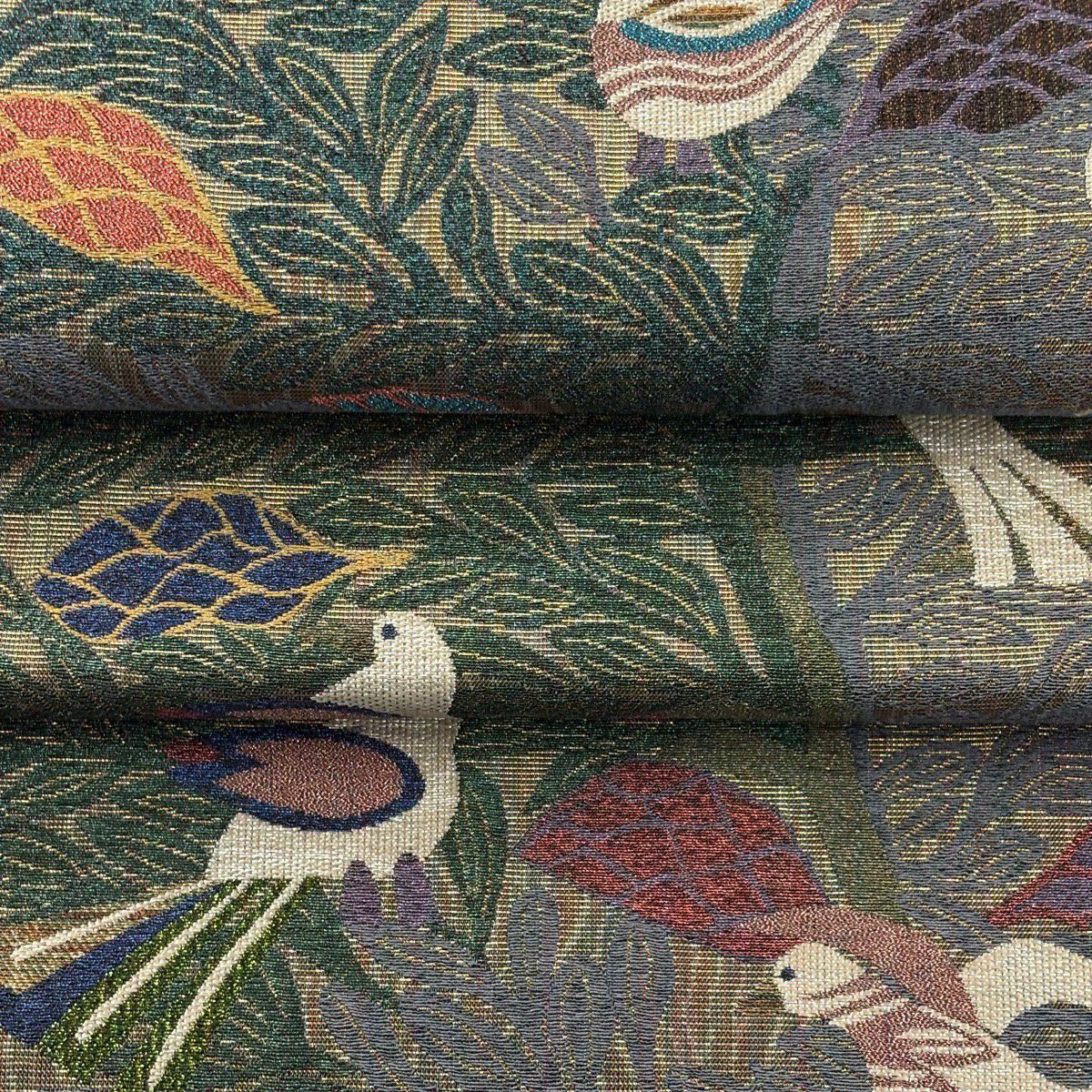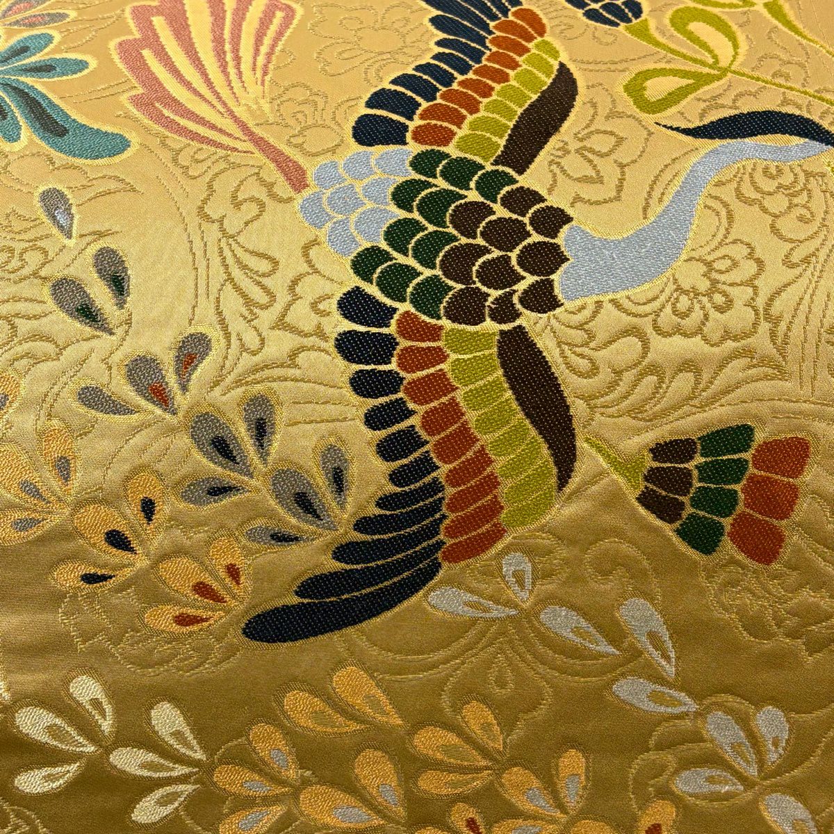 【美品】 袋帯 逸品 落款あり 鳥 樹木 金糸 箔 金色 六通 正絹