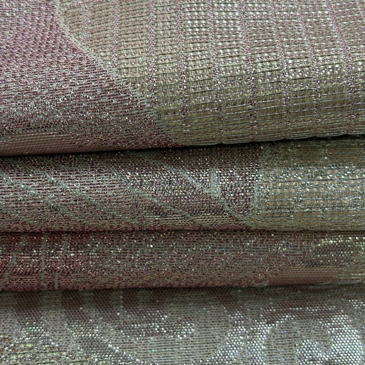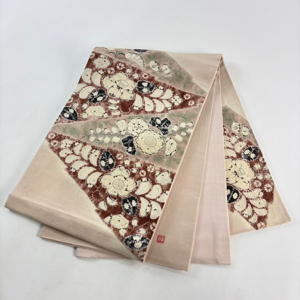 袋帯 逸品 辻が花柄 金通し ピンクベージュ お太鼓柄 正絹