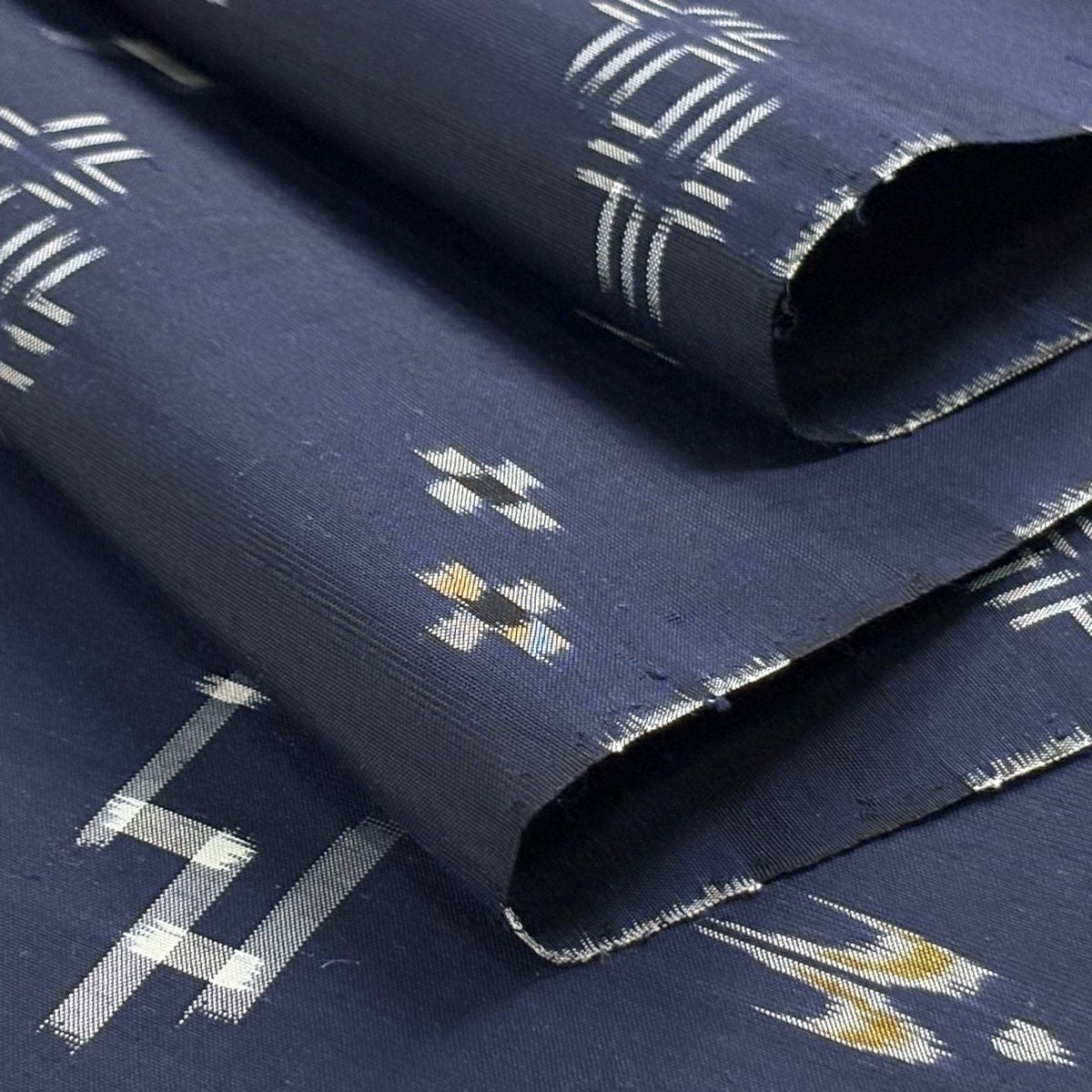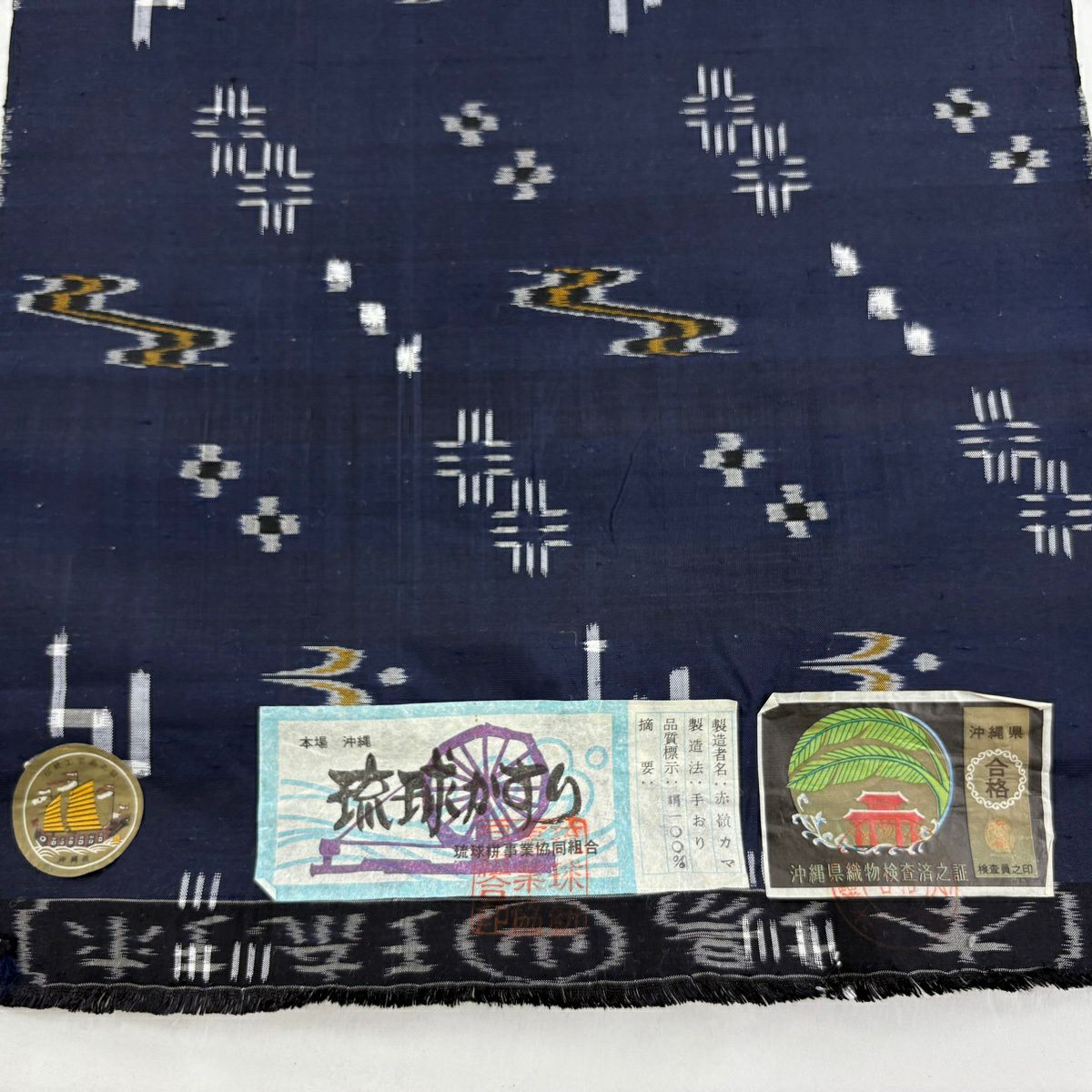 反物 逸品 紬 証紙有り 琉球かすり 手織り 燕 流水 濃紺 正絹