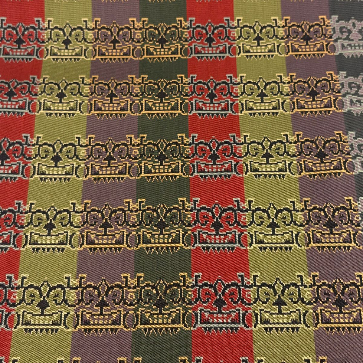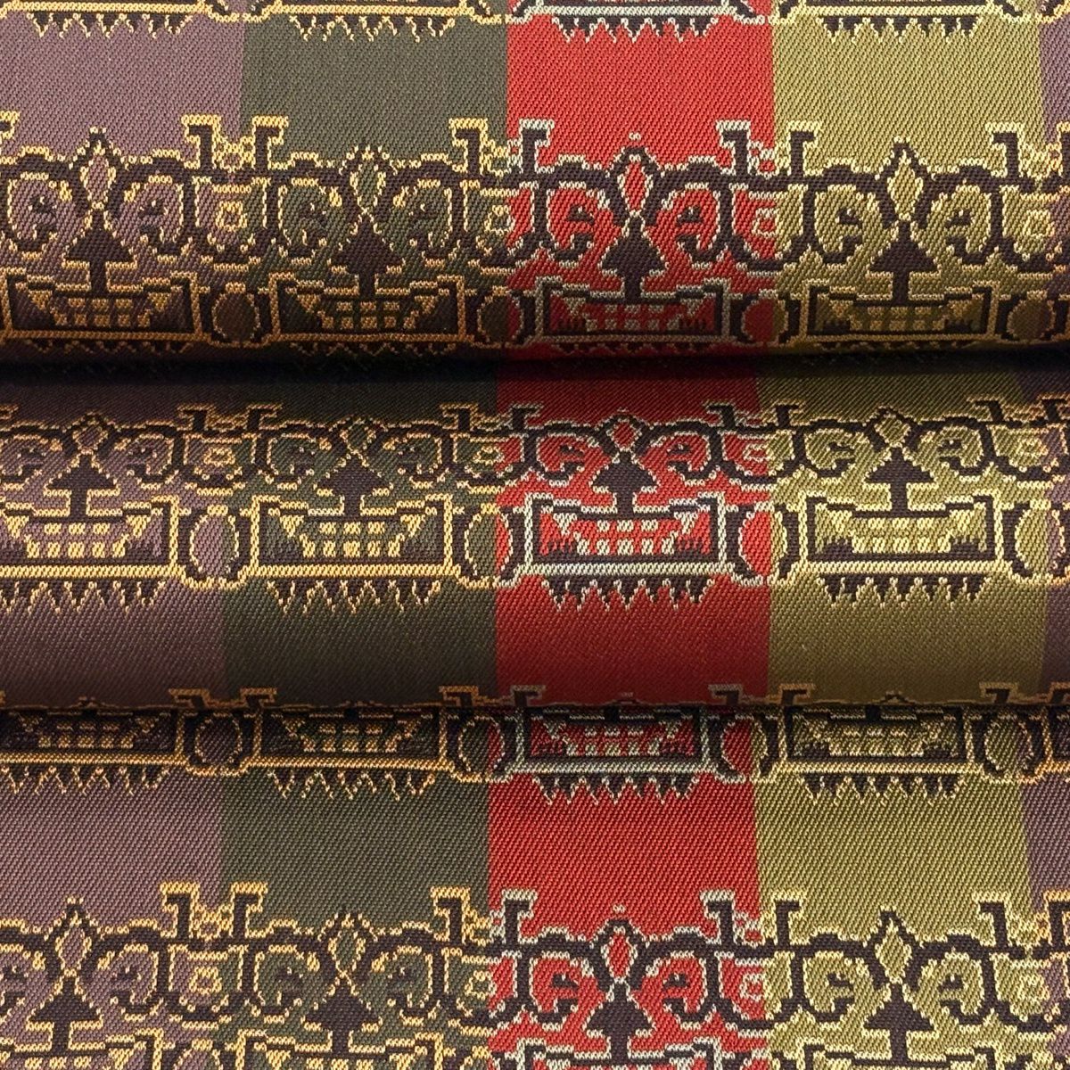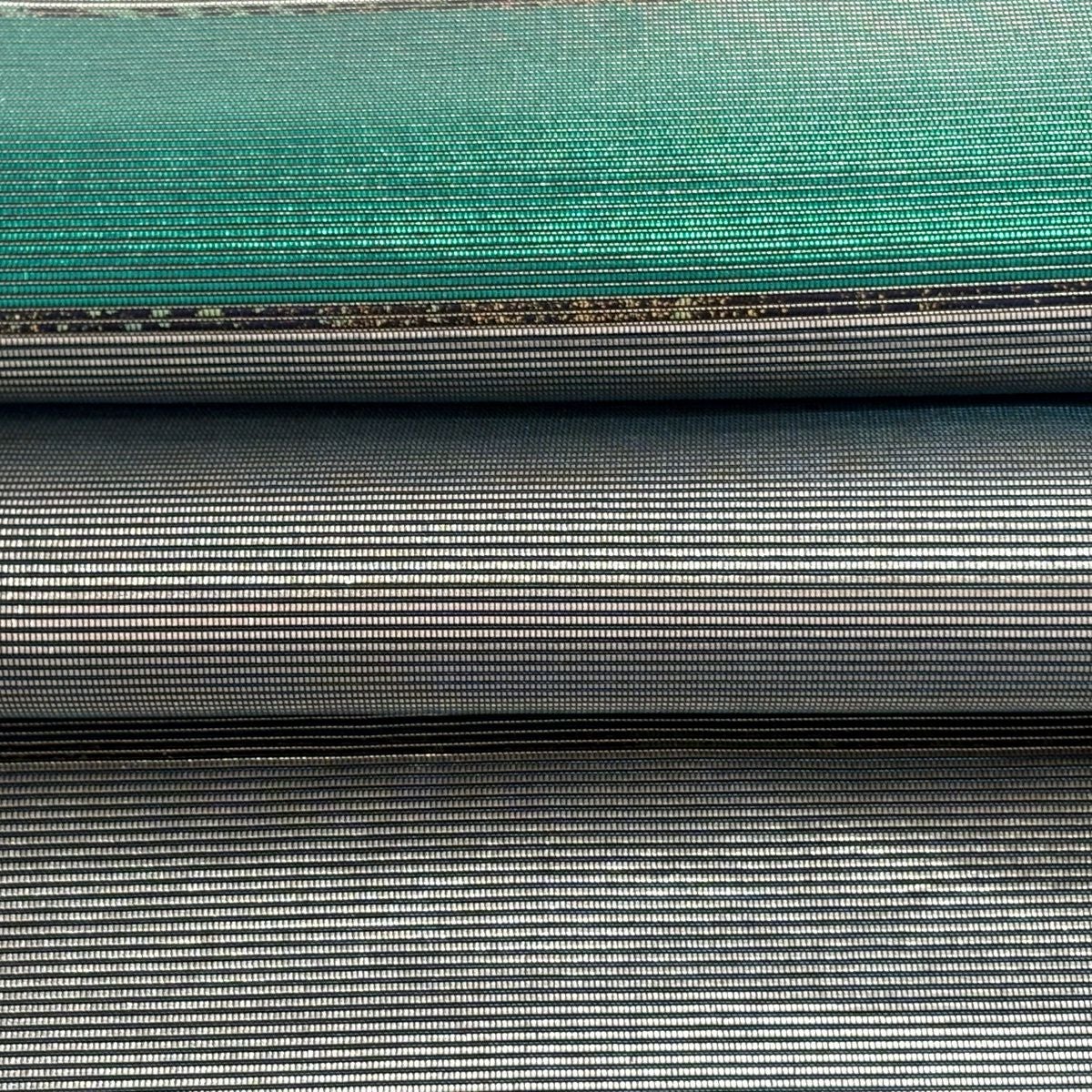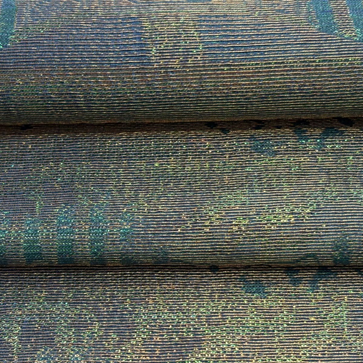 【美品】 袋帯 逸品 藤林徳扇 落款あり 段縞 箔 緑 全通 正絹