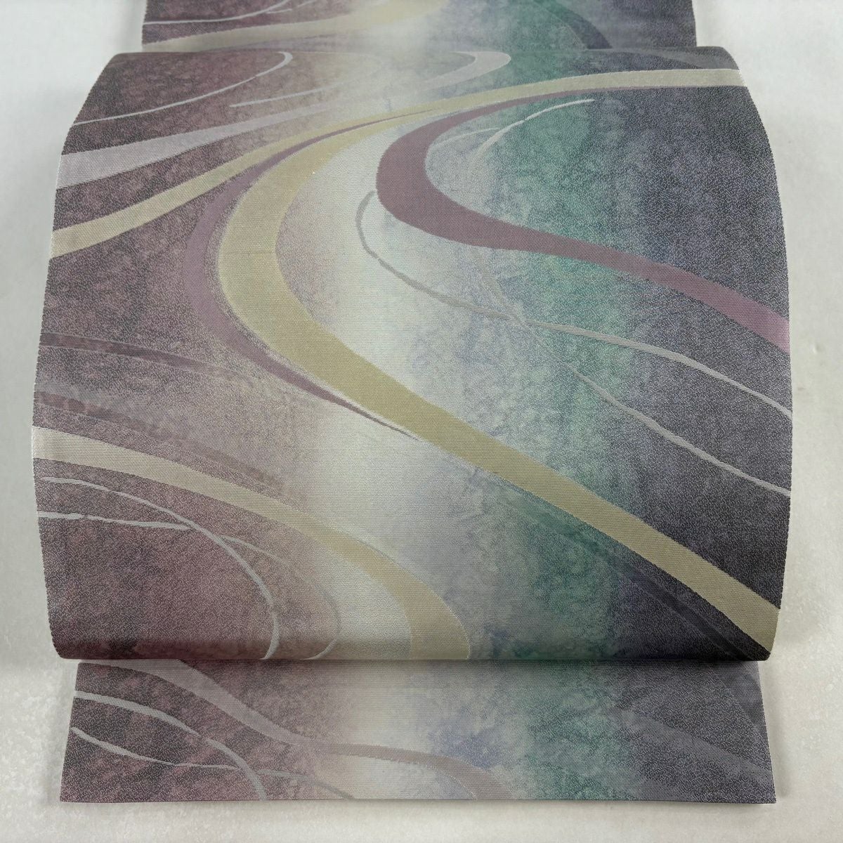 【美品】 袋帯 逸品 菱屋善兵衛 落款あり 流水 灰紫 六通 正絹