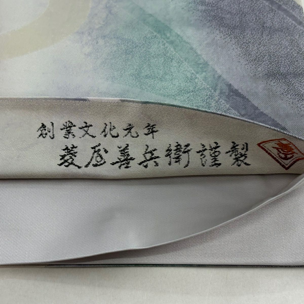 【美品】 袋帯 逸品 菱屋善兵衛 落款あり 雪輪 灰色 全通 正絹