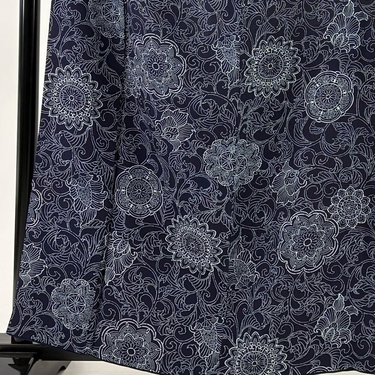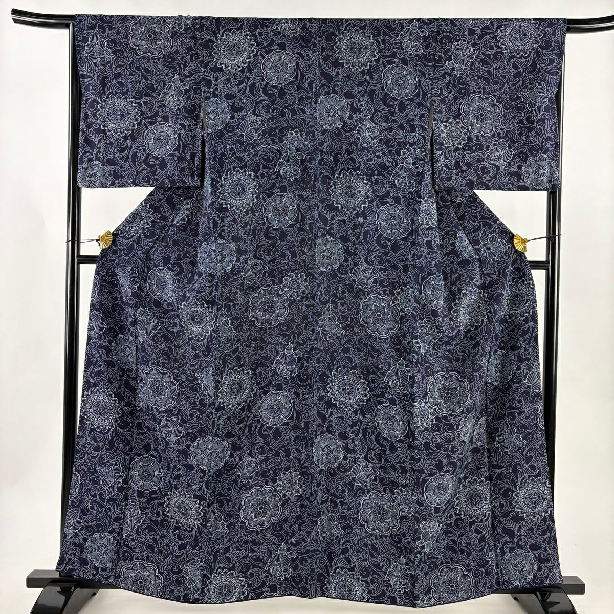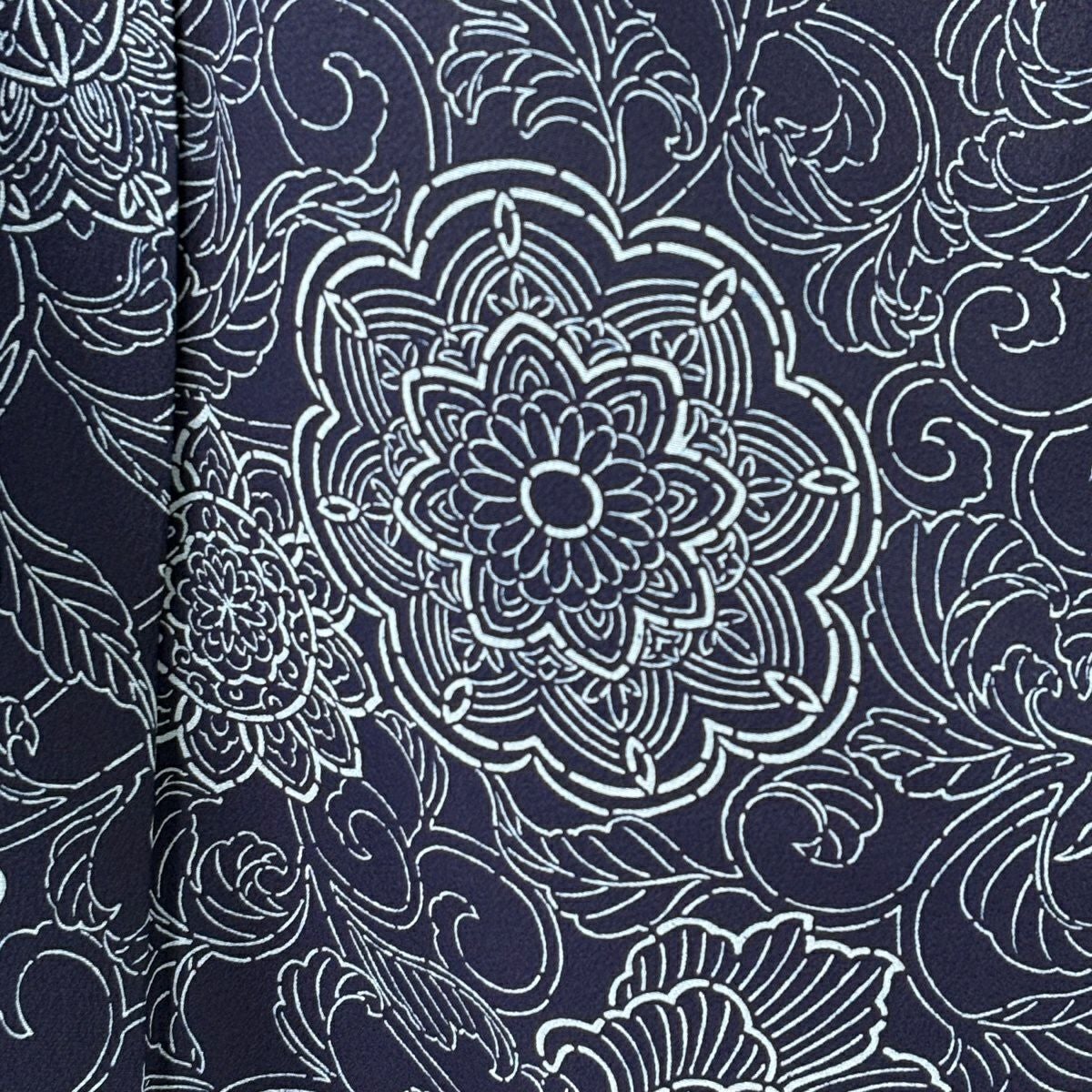 小紋 身丈161cm 裄丈68cm L 袷 花唐草 紺色 正絹 逸品