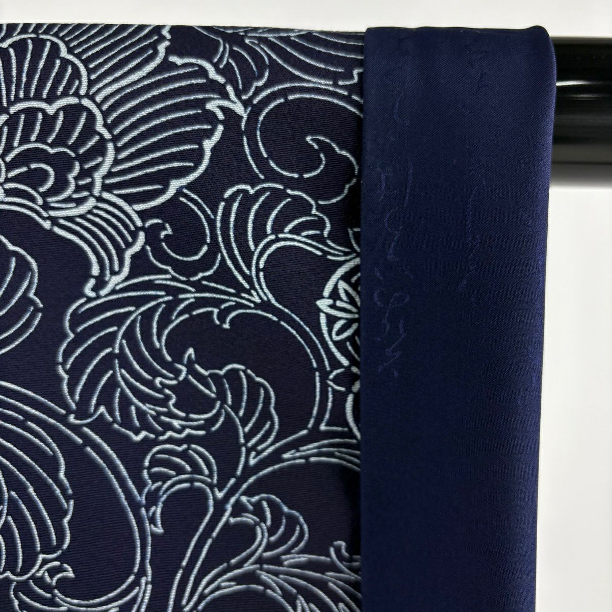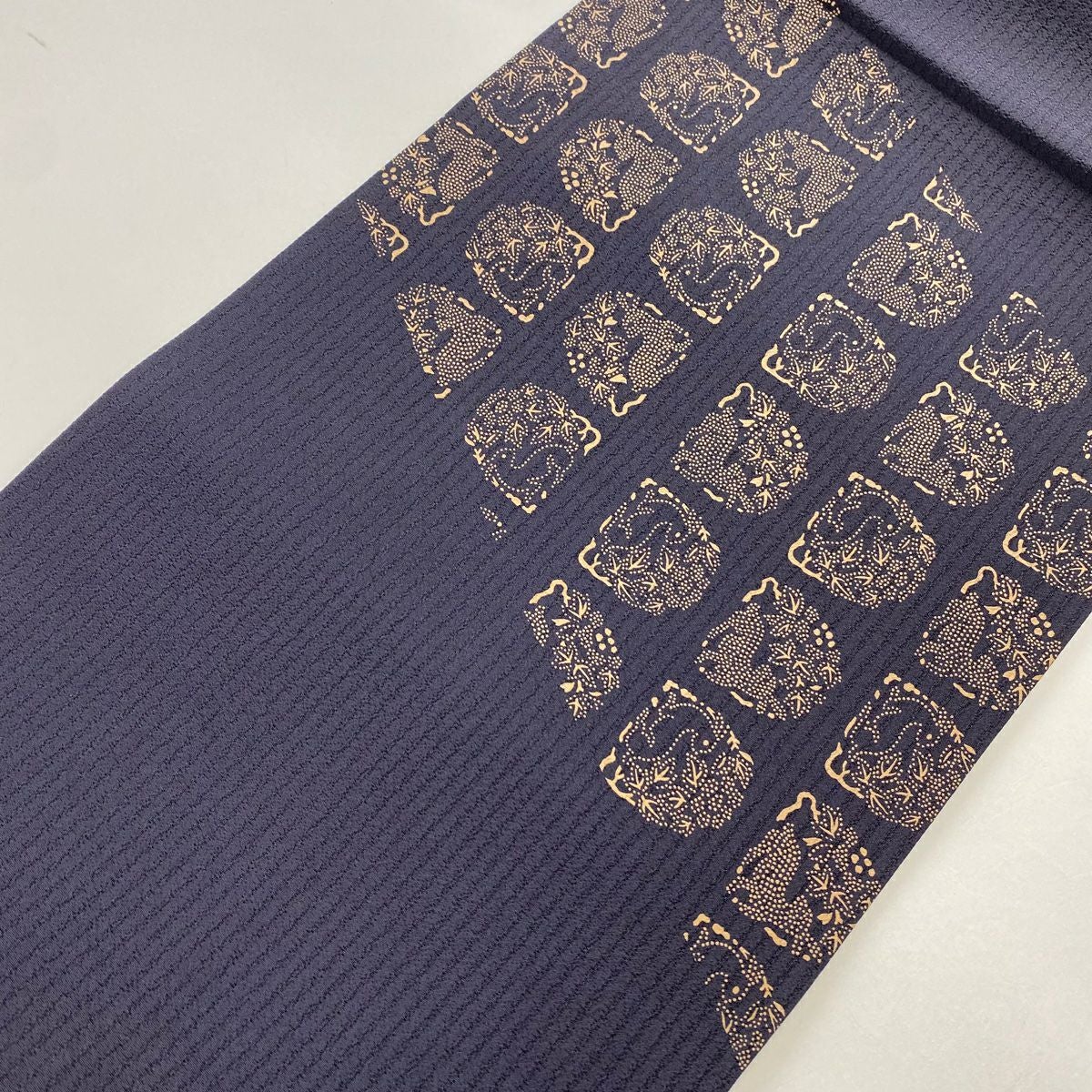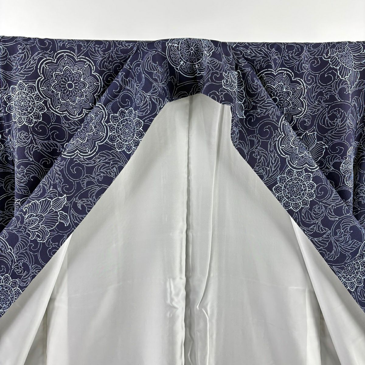 小紋 身丈161cm 裄丈68cm L 袷 花唐草 紺色 正絹 逸品