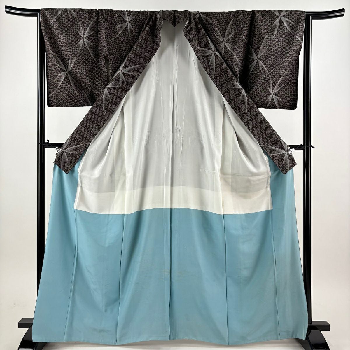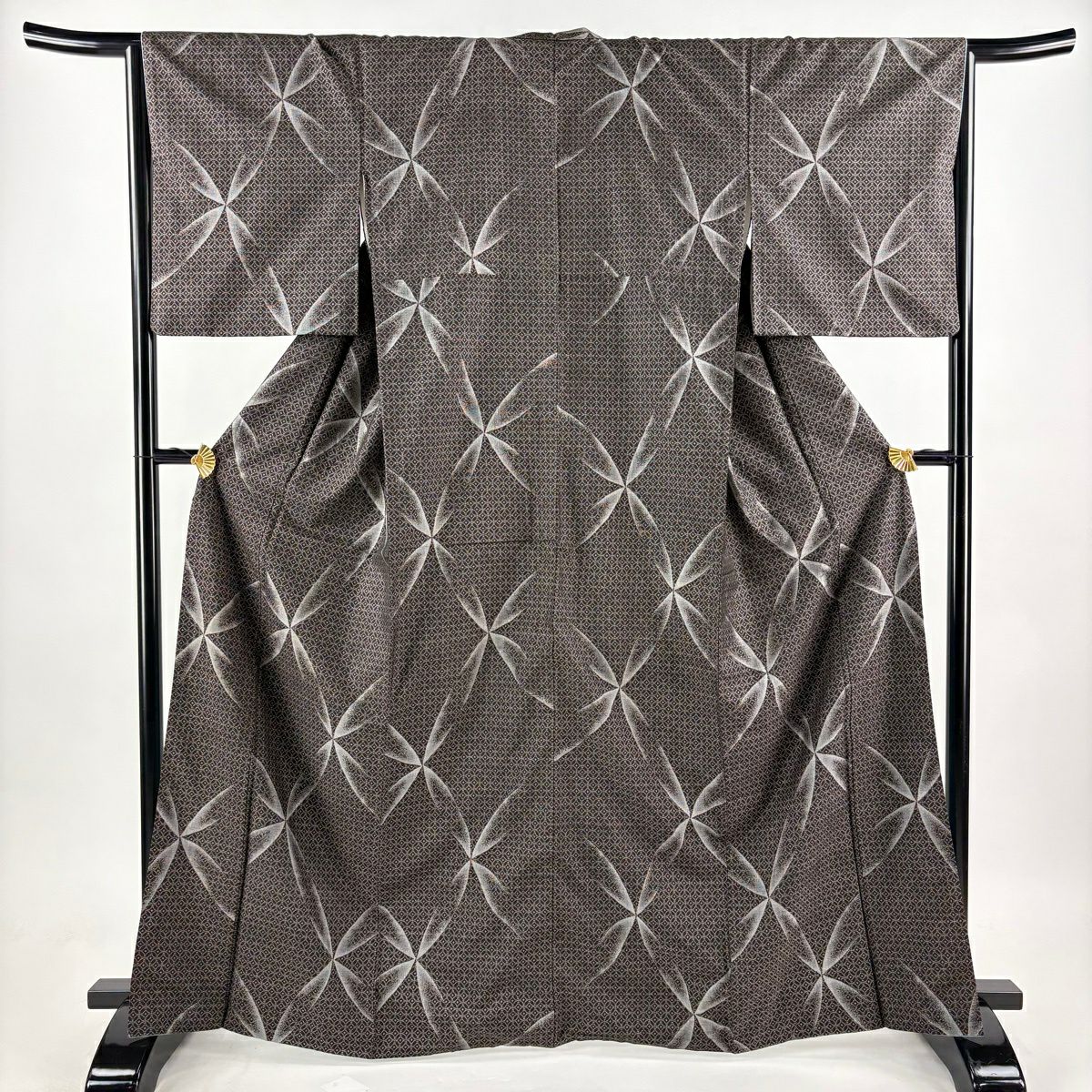 紬 身丈165.5cm 裄丈65cm M 袷 七宝 焦茶色 正絹 逸品
