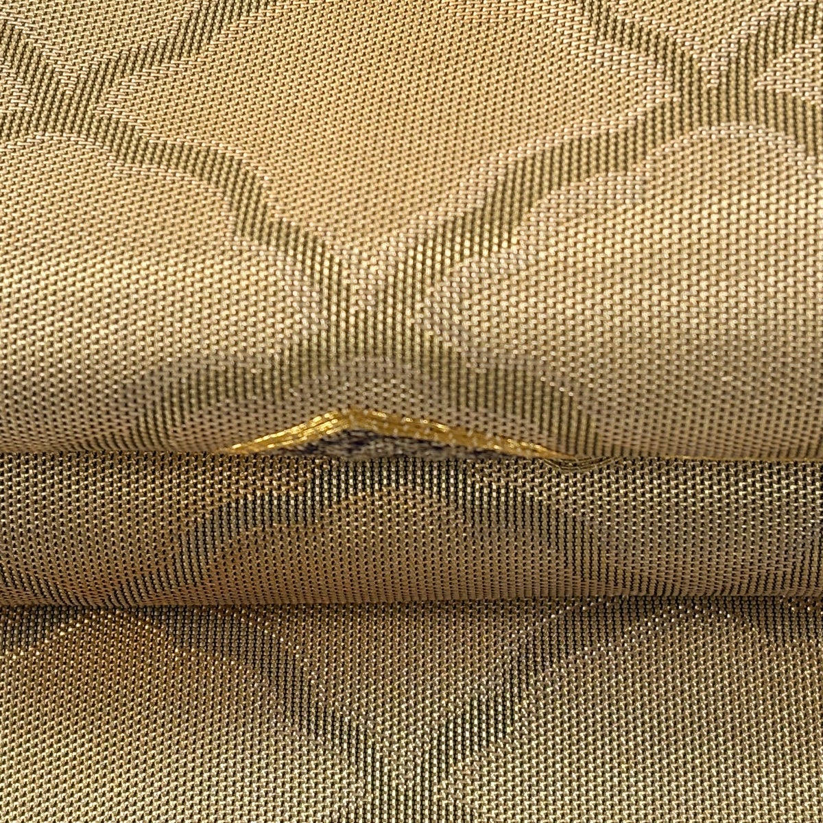 【美品】 袋帯 秀品 格天井 菊 箔 金糸 金色 六通 正絹
