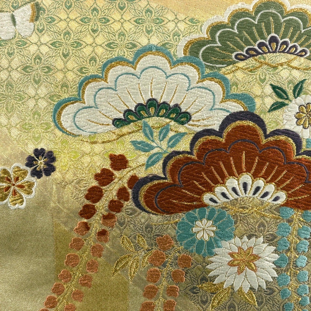 袋帯 秀品 菊 桜 金銀糸 箔 金色 六通 正絹