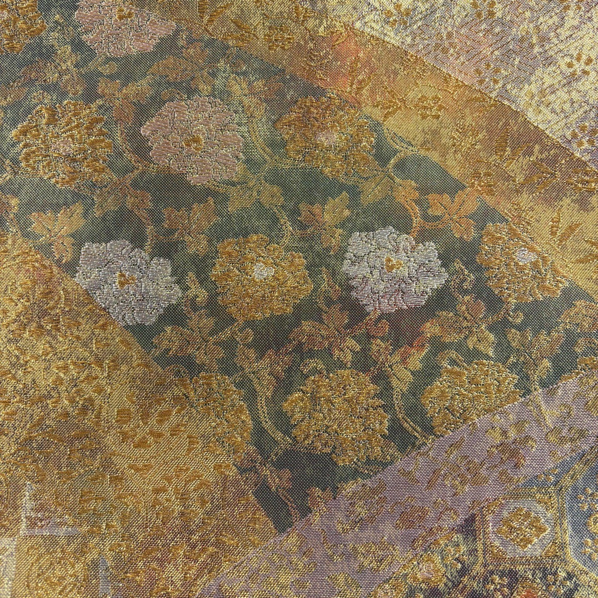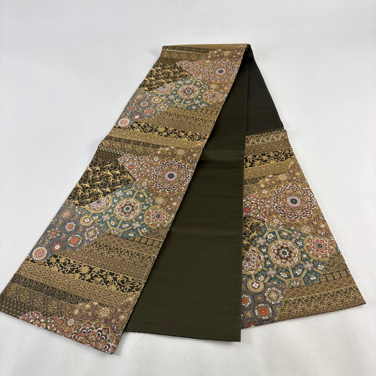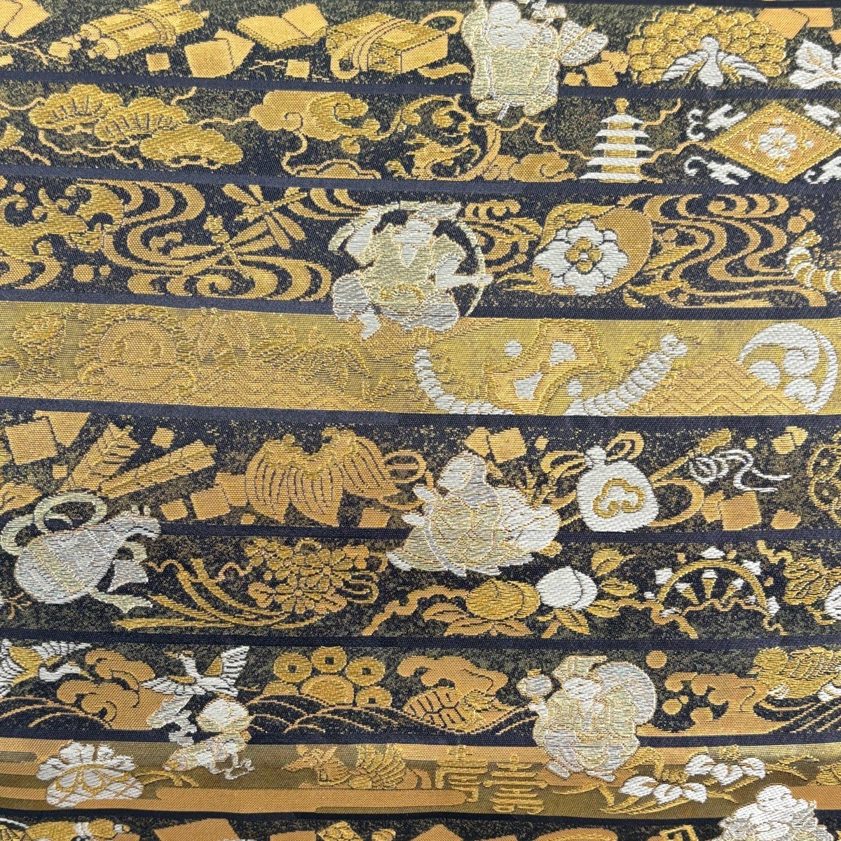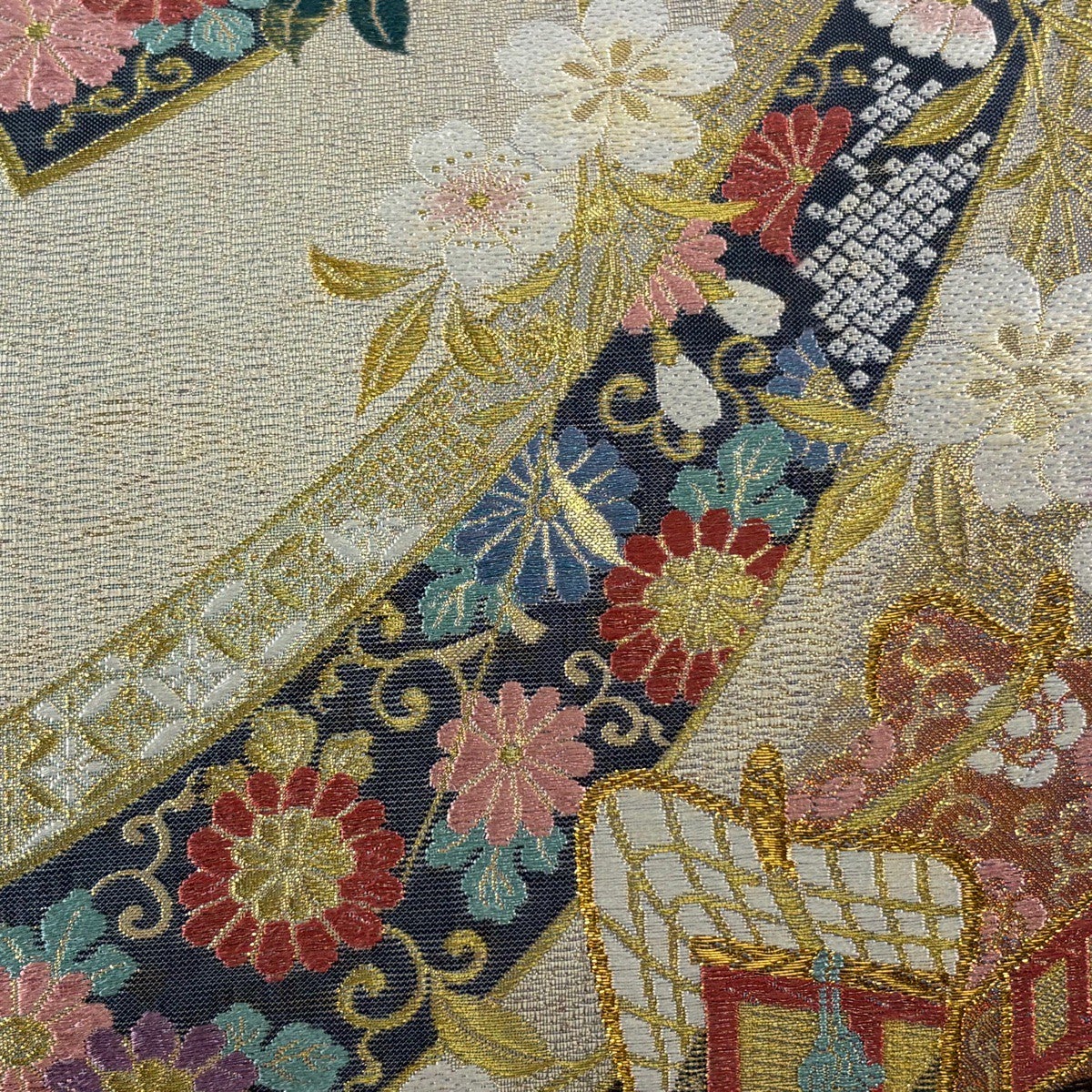 【美品】 袋帯 秀品 正倉院蒔絵 華文 箔 唐織 金色 六通 正絹