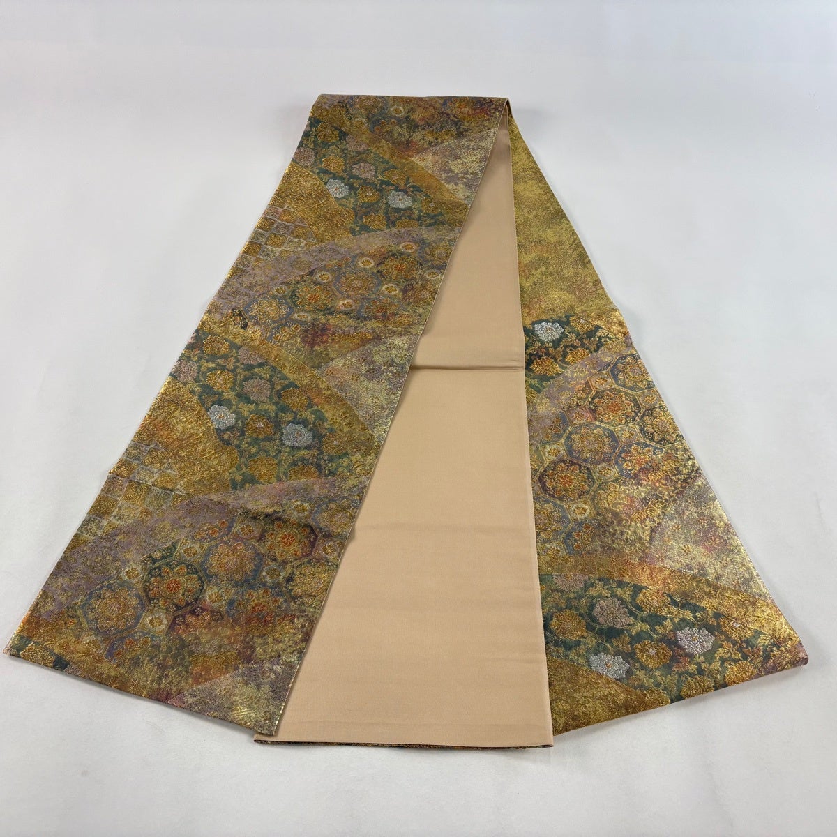 【美品】 袋帯 秀品 格天井 草花 金糸 箔 金色 お太鼓柄 正絹