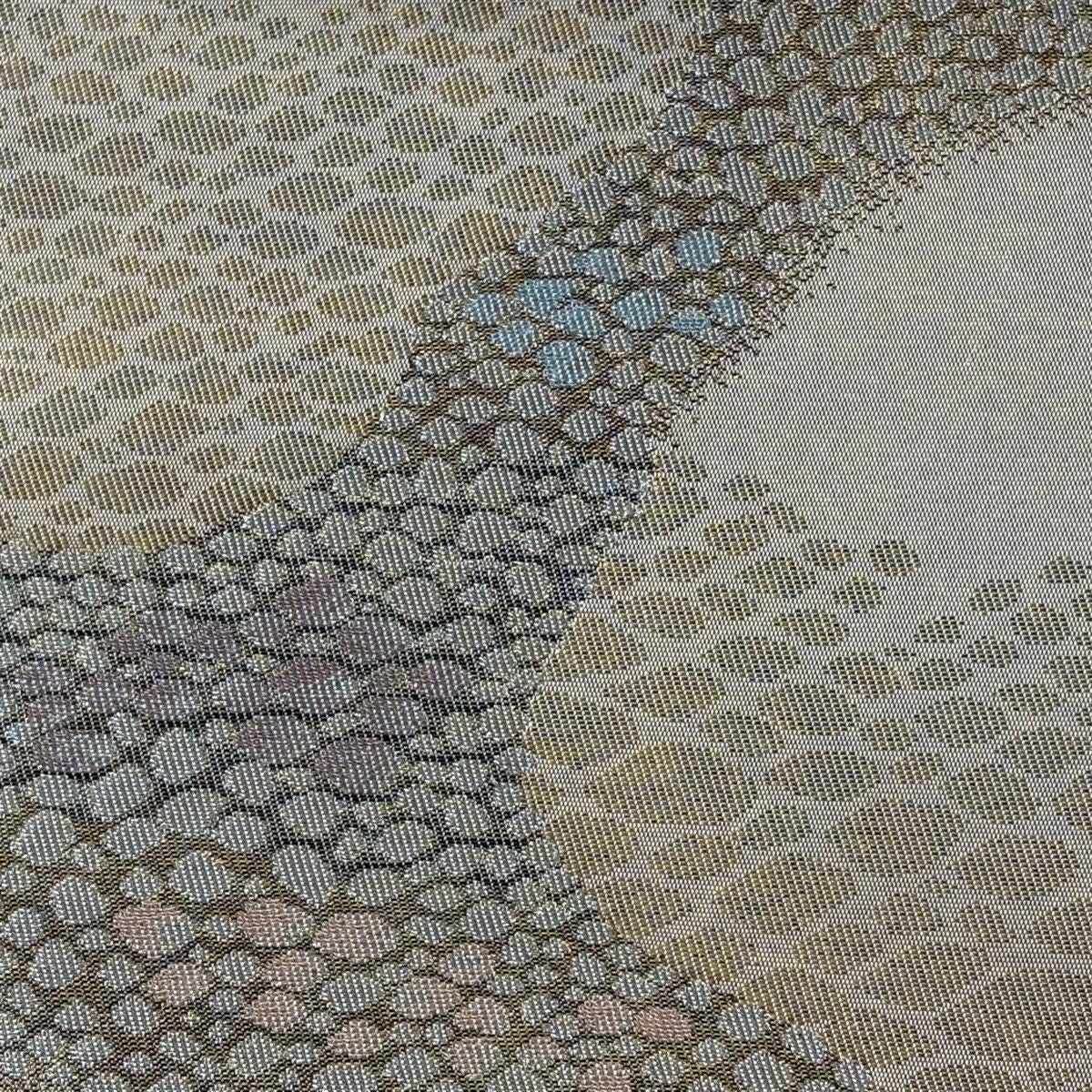 【美品】 袋帯 秀品 服部織物 落款あり 格子 桜 箔 金色 六通 正絹