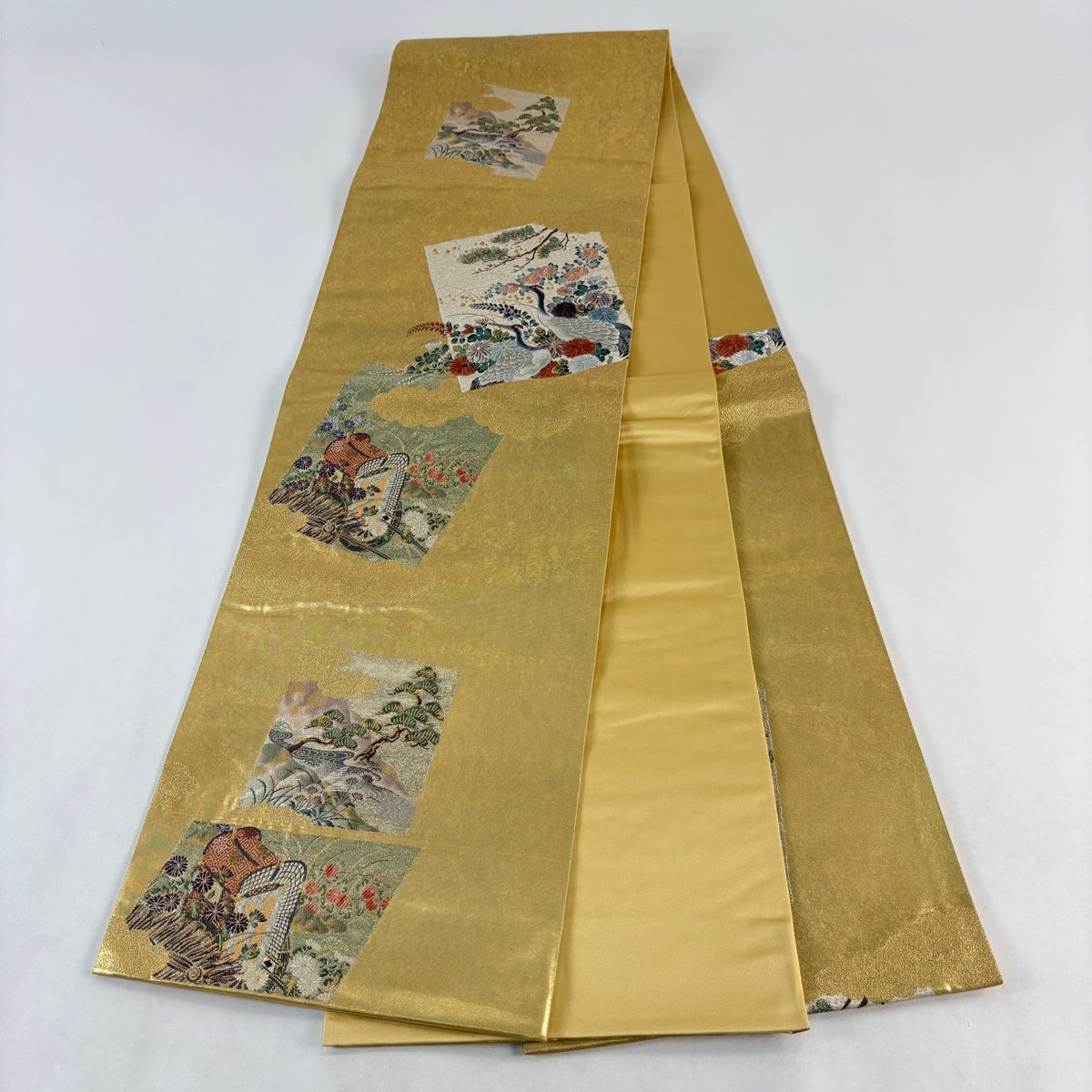 【美品】 袋帯 逸品 紋屋井関 落款あり 御寮織 鳥 流水 金糸 箔 金色 六通 正絹