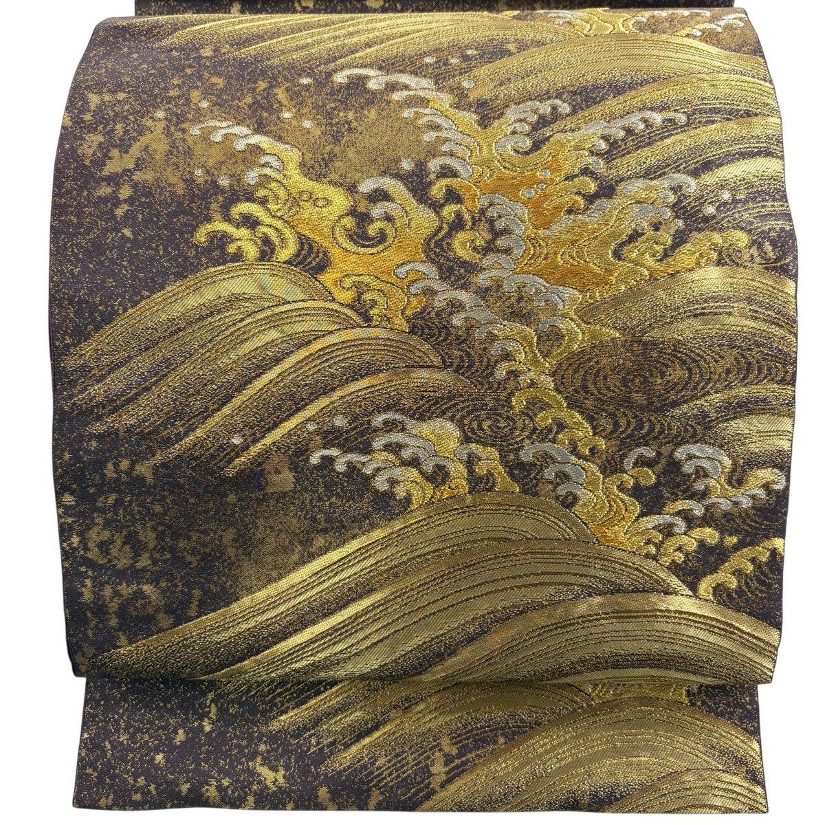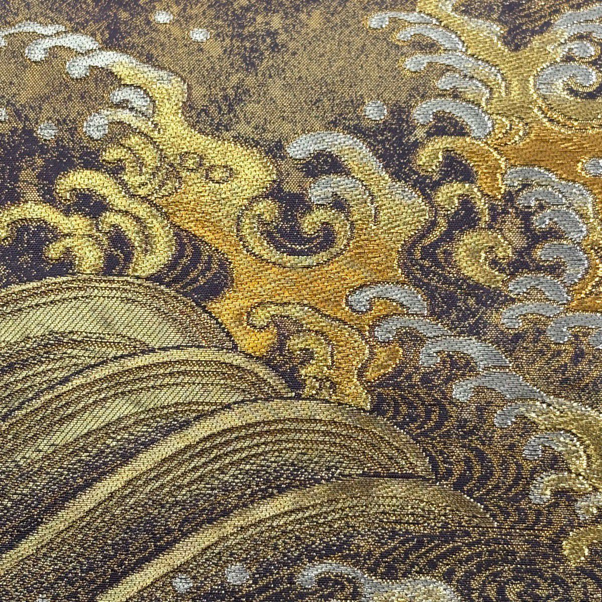 【美品】 袋帯 逸品 川島織物 落款あり 関西仕立て 波頭 金糸 箔 金色 六通 正絹