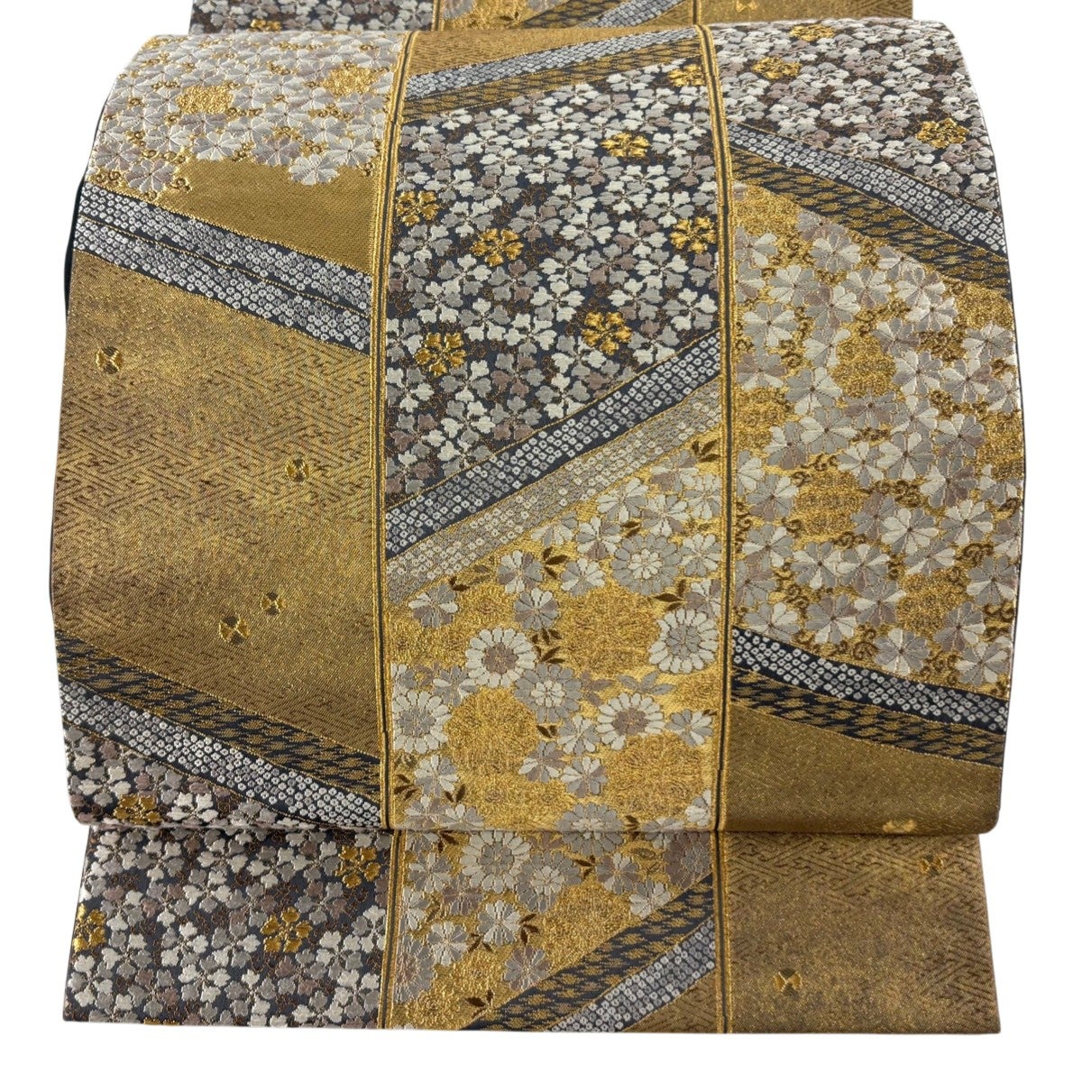 【在庫一掃】 袋帯 美品 名品 落款あり 流水 幾何学 金糸 箔 金色 お太鼓柄 正絹