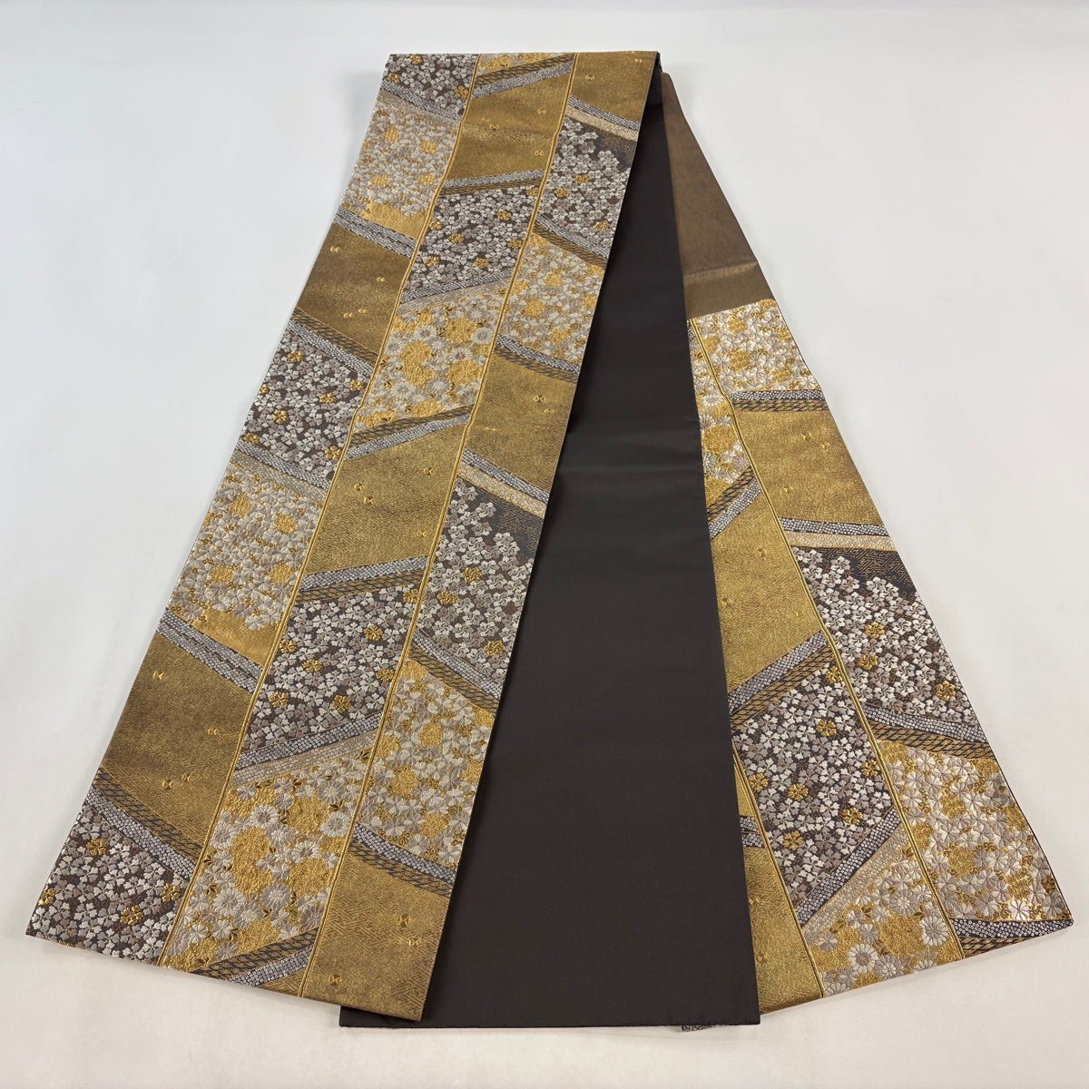 袋帯 逸品 誉田屋源兵衛 落款あり 関西仕立て 幾何学 金銀糸 箔 金茶 お太鼓柄 正絹