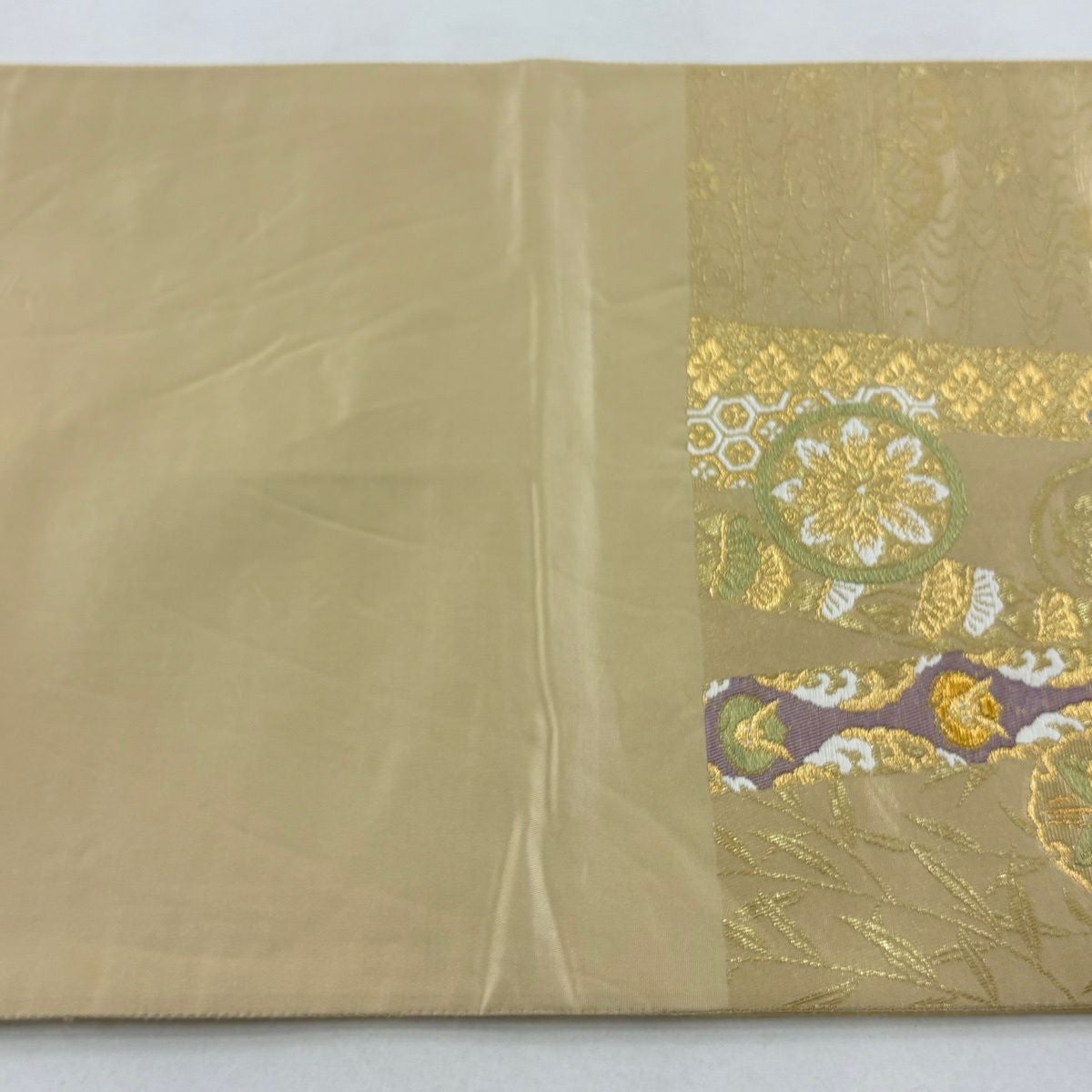 【美品】 袋帯 秀品 雪輪 草花 箔 銀色 六通 正絹