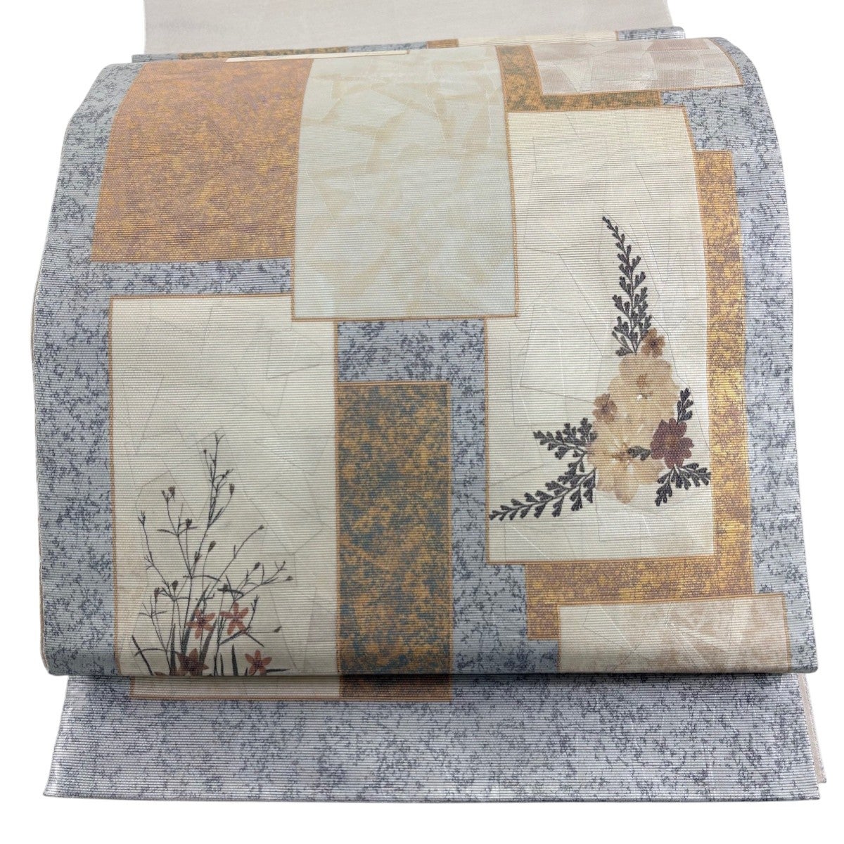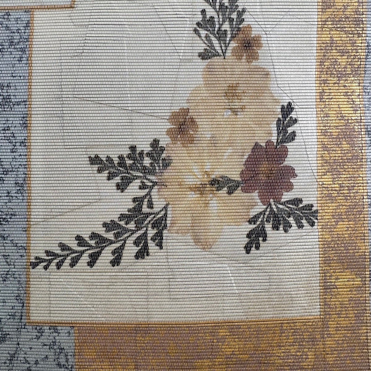 袋帯 秀品 関西仕立て 草花 箔 銀色 六通 正絹