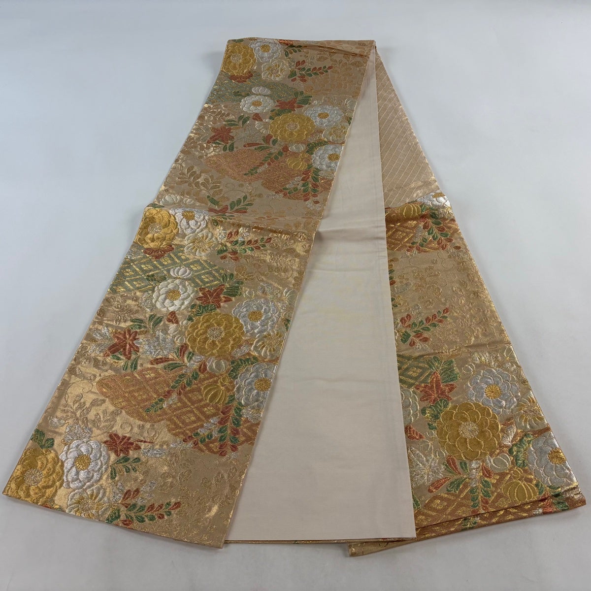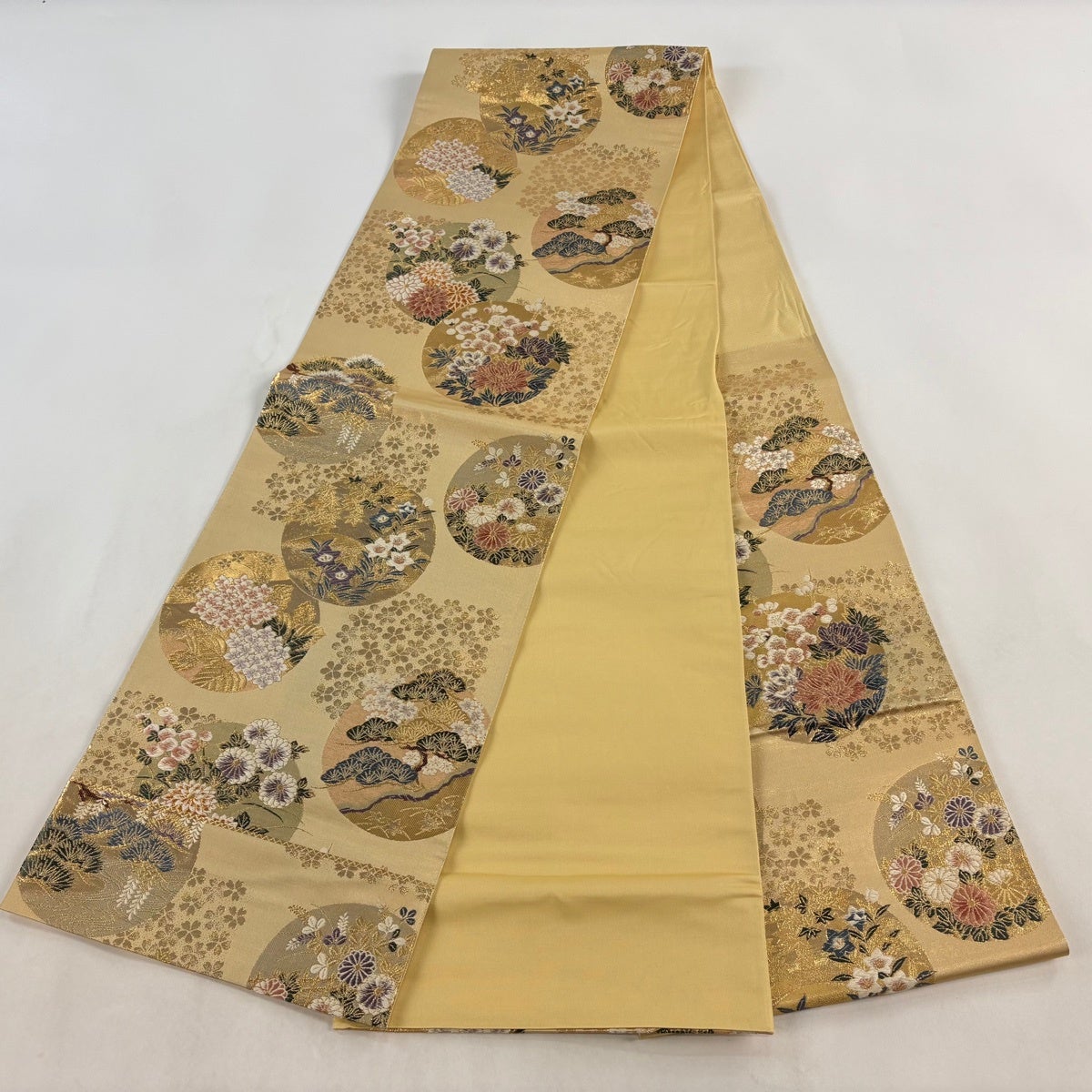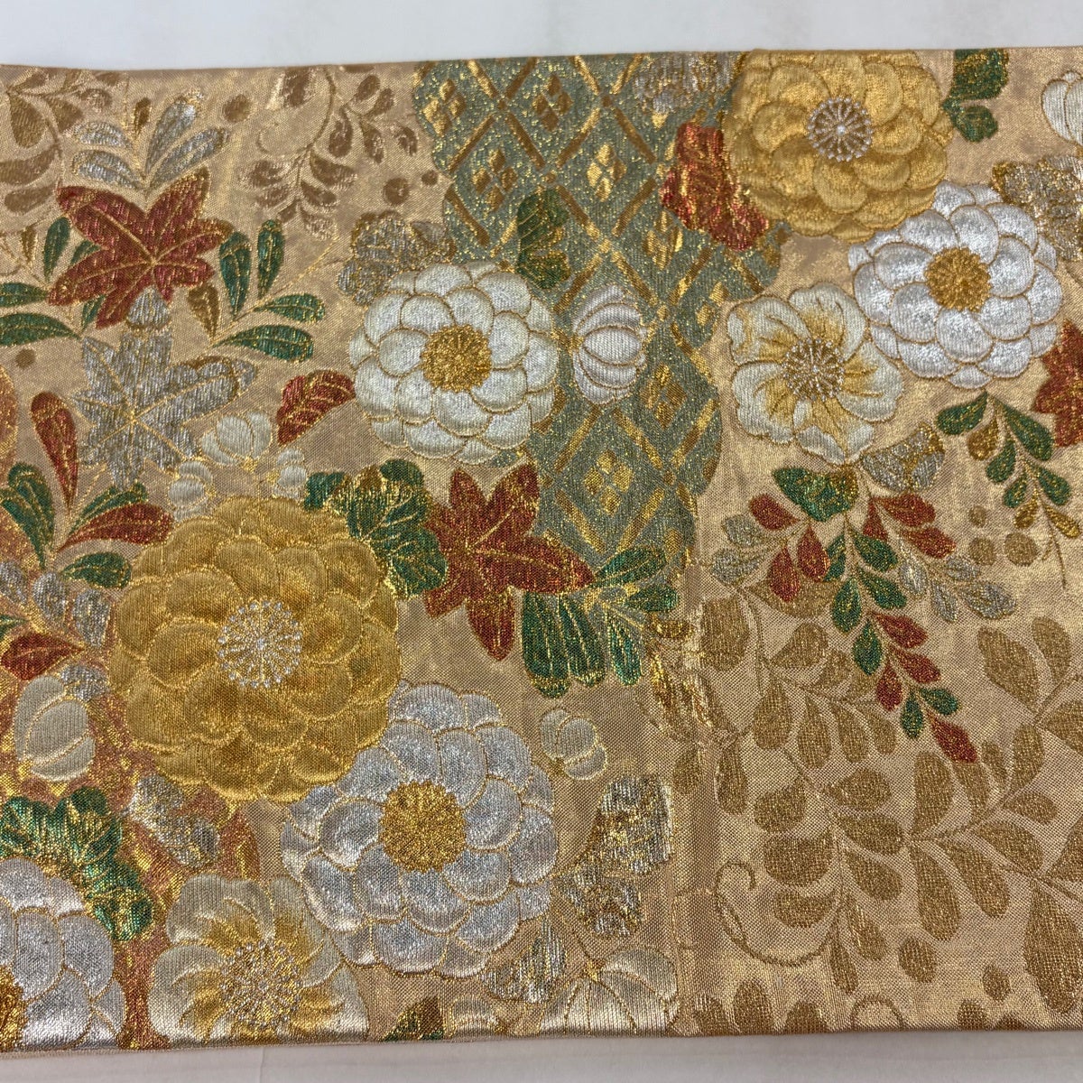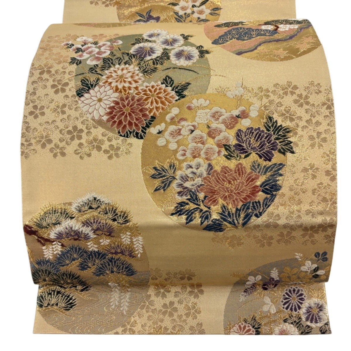 袋帯 秀品 扇面 華文 金銀糸 箔 金色 六通 正絹