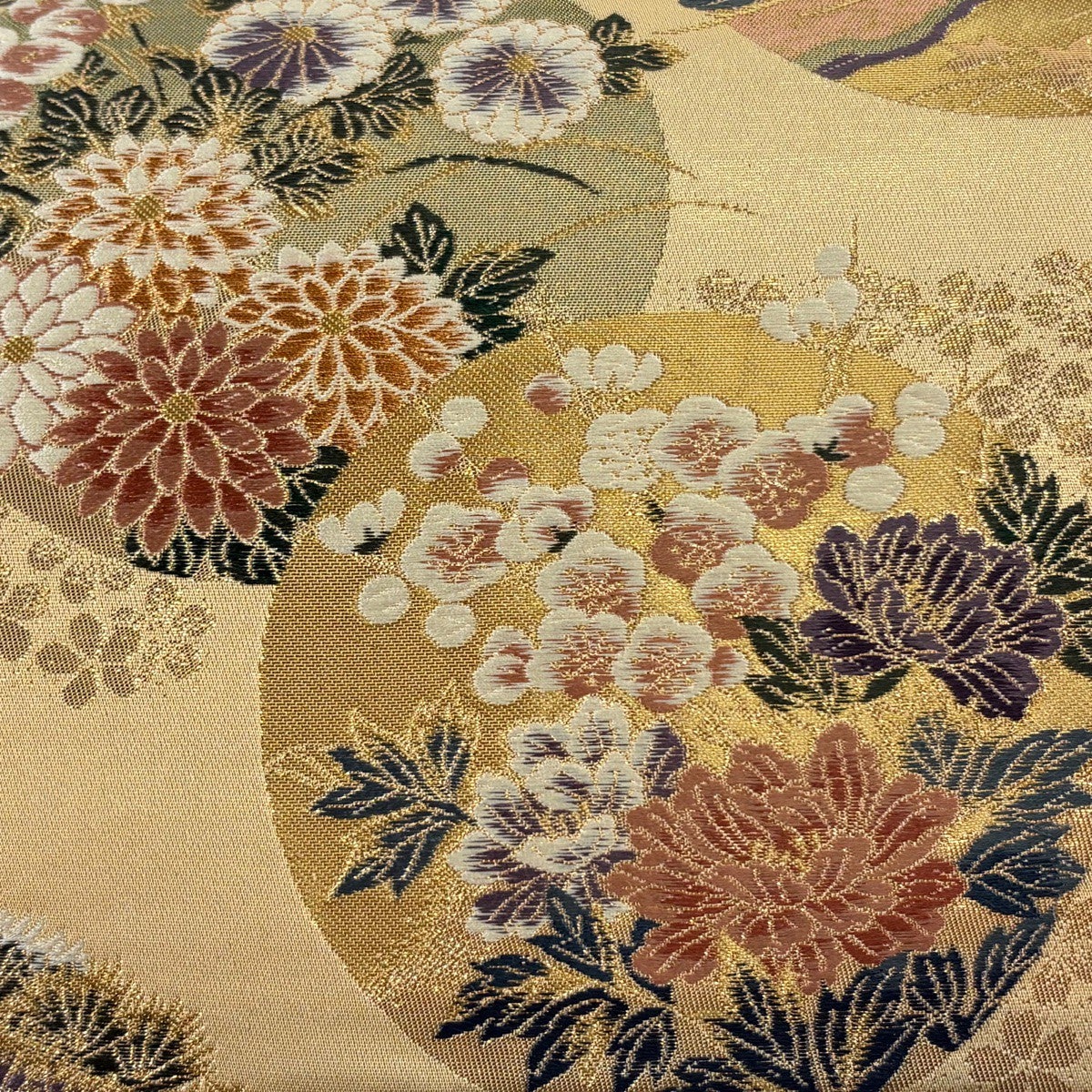 袋帯 秀品 菊 熨斗 唐織 箔 金色 六通 正絹
