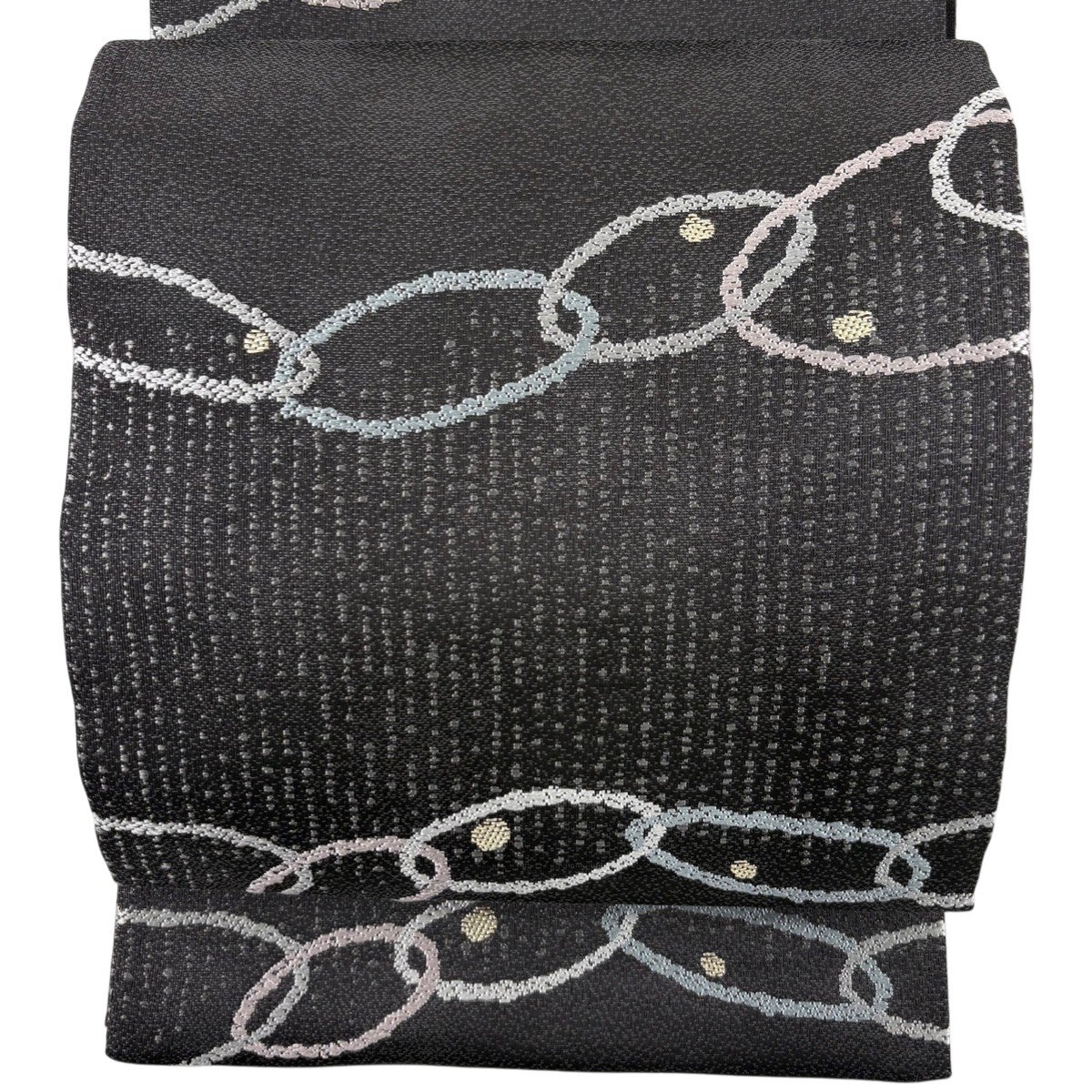 袋帯 秀品 花 立涌 金銀糸 箔 銀色 六通 正絹
