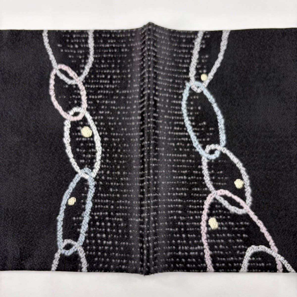 名古屋帯 優品 花菱 草花 刺繍 金彩 銀色 正絹
