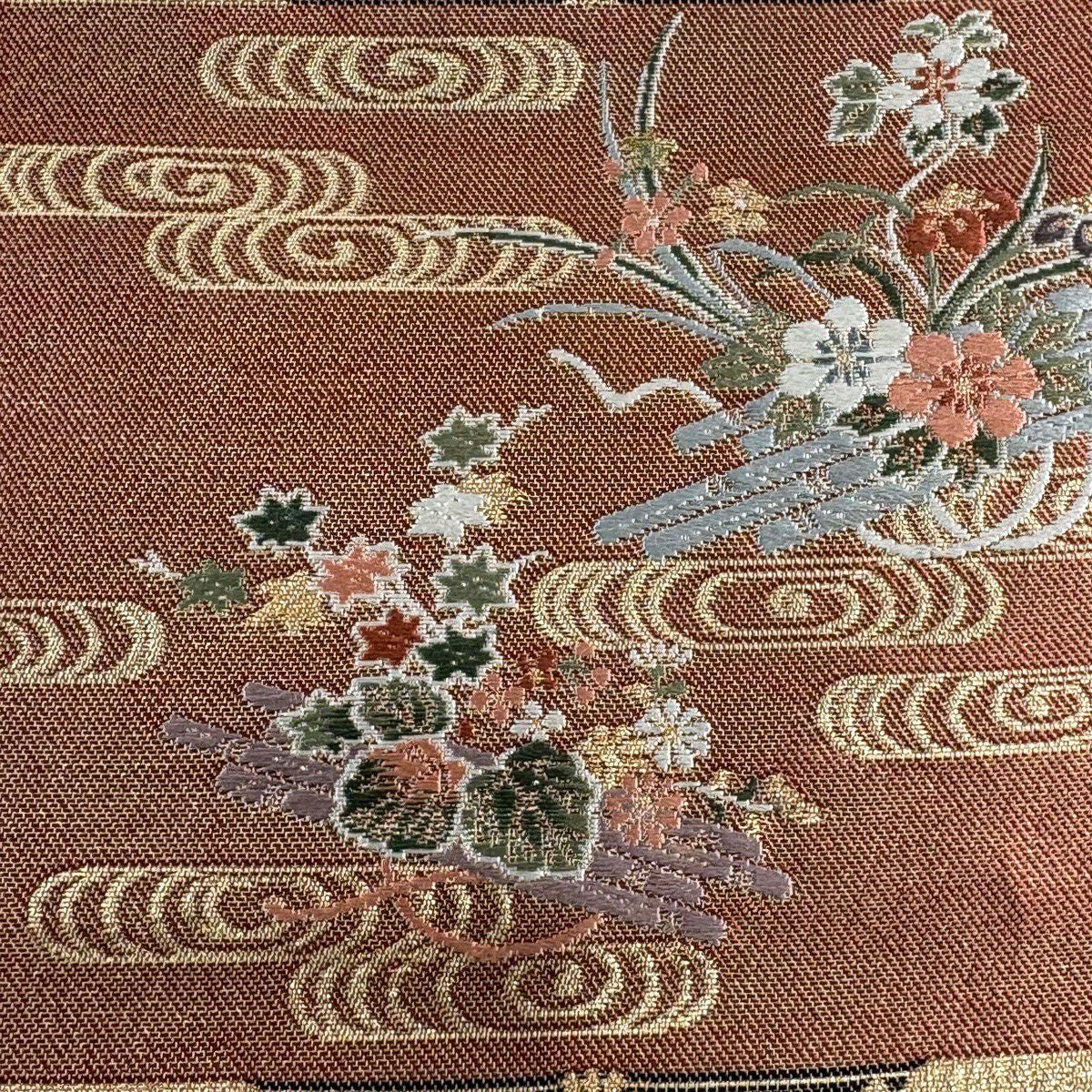 袋帯 秀品 花唐草 桜 唐織 箔 金色 六通 正絹