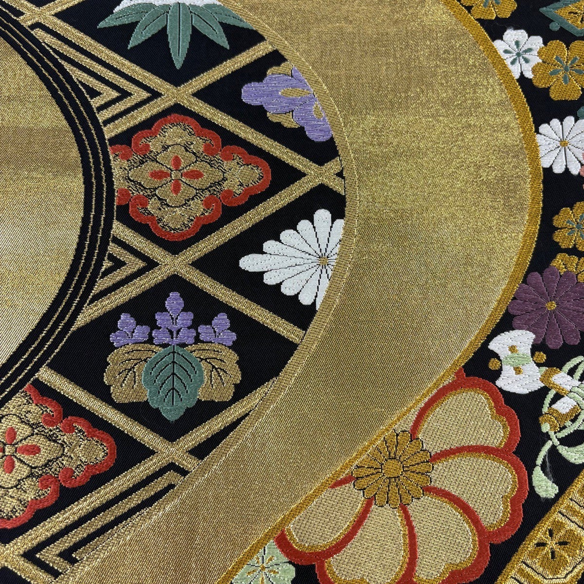 袋帯 秀品 花丸文 草花 金銀糸 箔 金色 六通 正絹