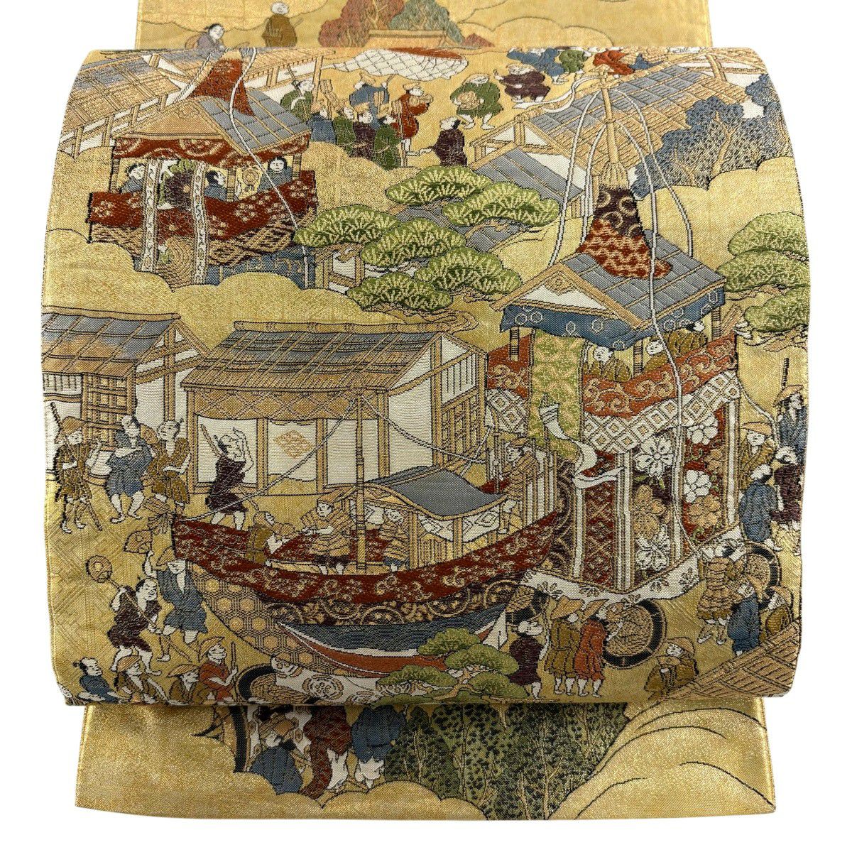 袋帯 秀品 山鉾 人物 金糸 箔 金色 お太鼓柄 正絹
