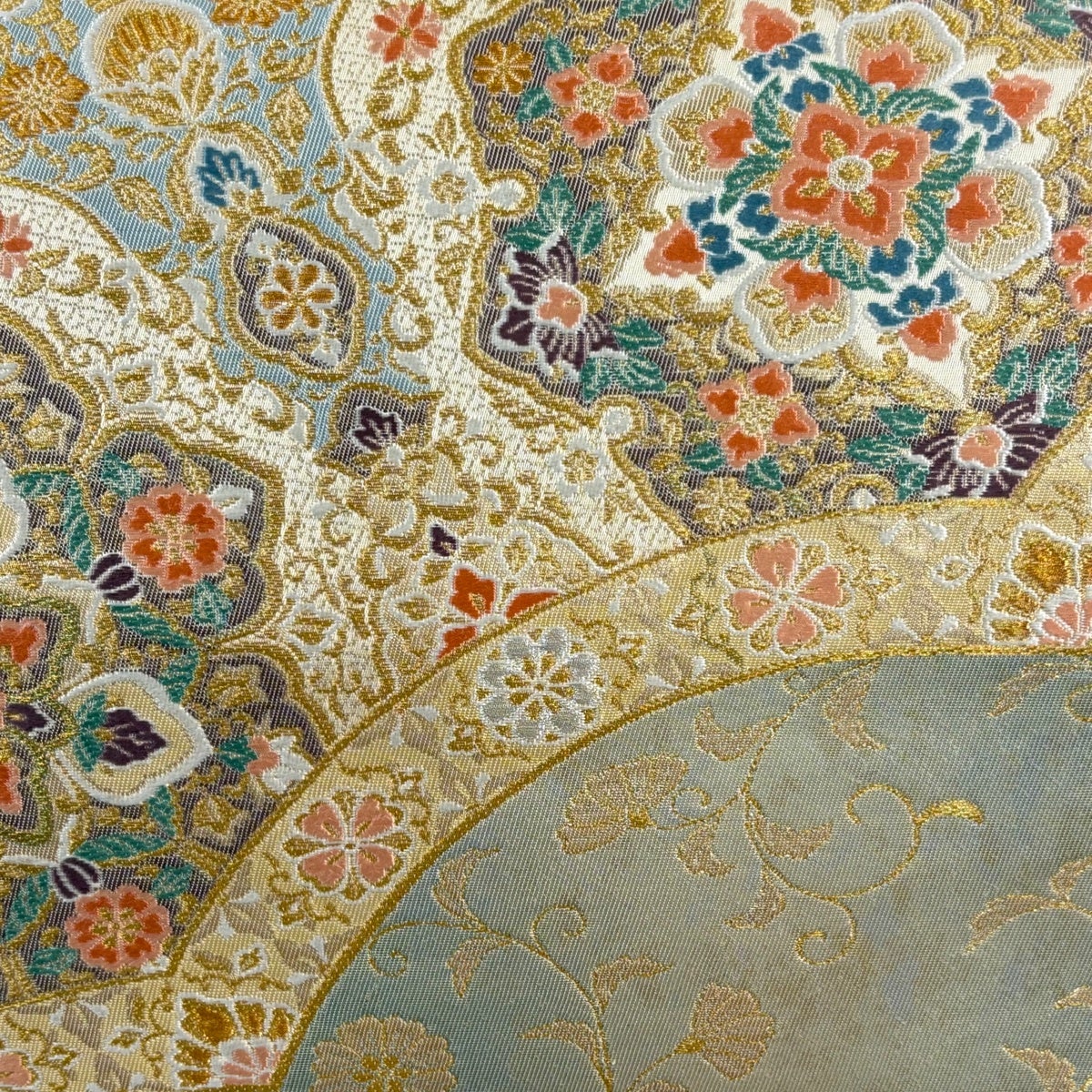 【美品】 袋帯 秀品 関西仕立て 華文 七宝 金銀糸 箔 金色 六通 正絹