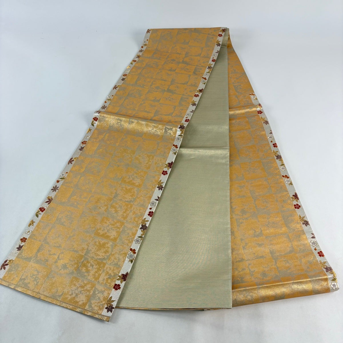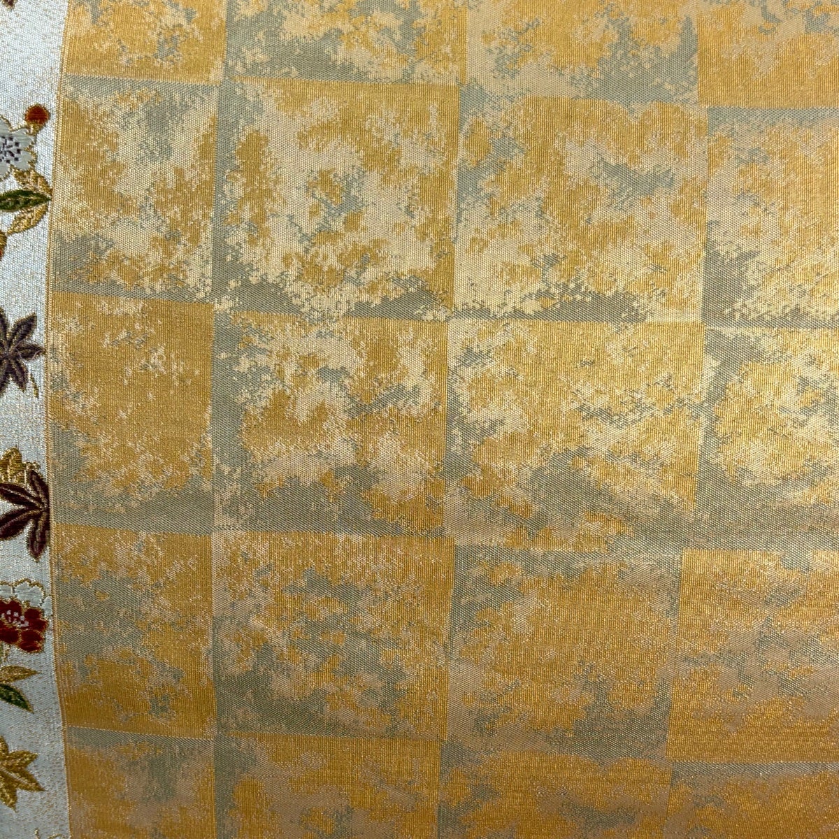 袋帯 秀品 菊 市松 金銀糸 箔 金色 六通 正絹