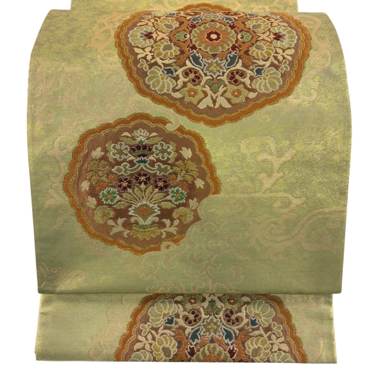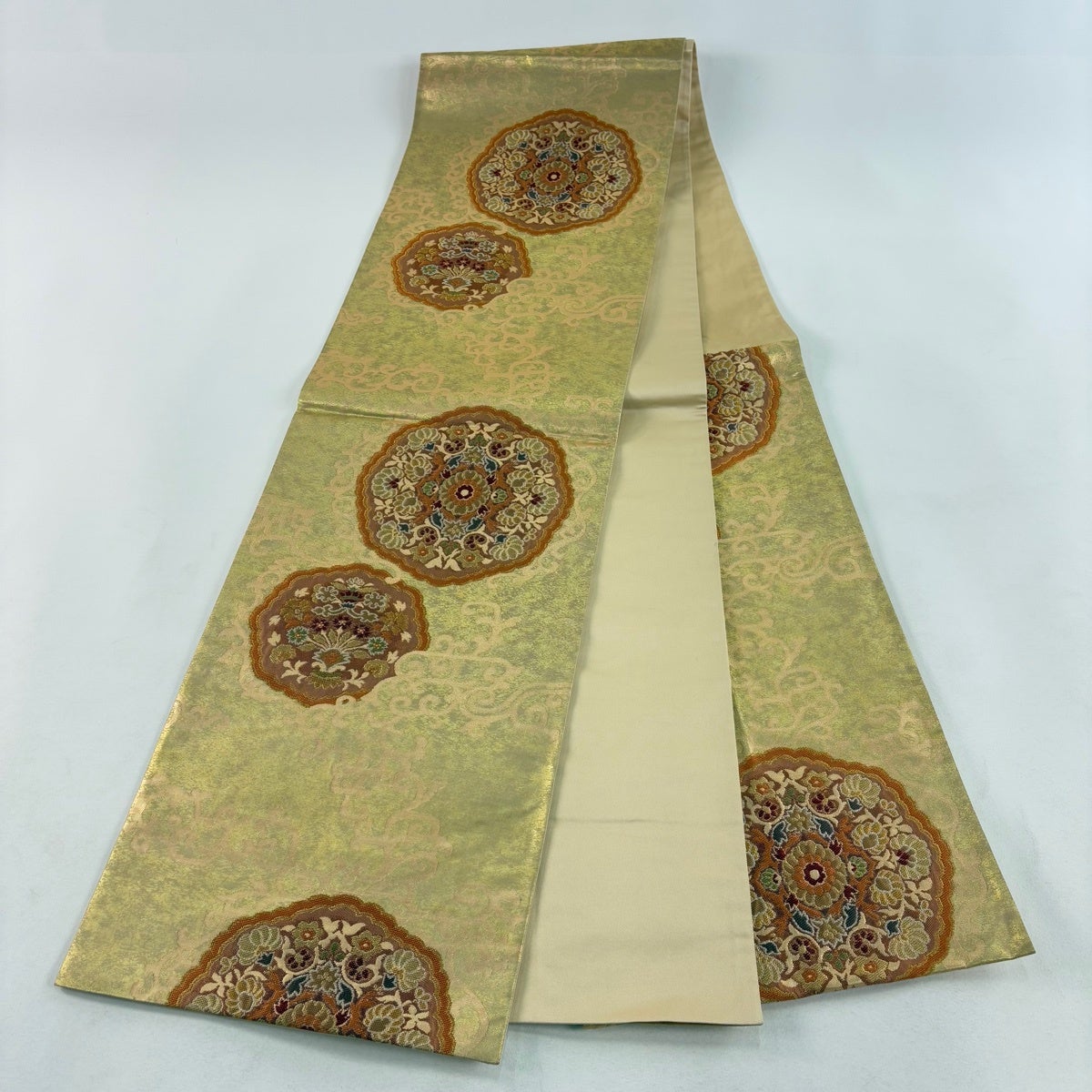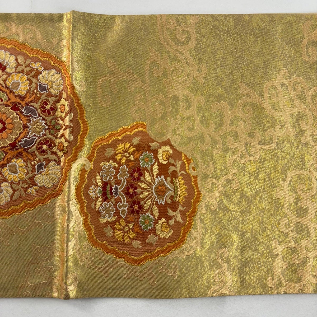 袋帯 秀品 蜀江華文 金銀糸 箔 金色 六通 正絹