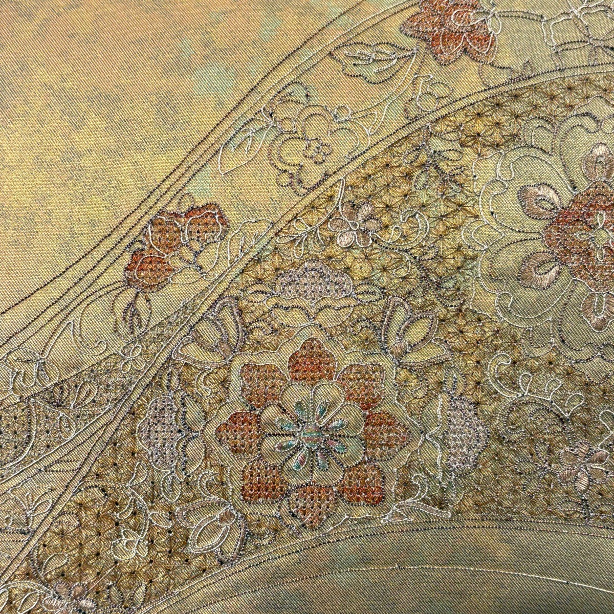 袋帯 秀品 色紙 草花 金糸 箔 金色 六通 正絹