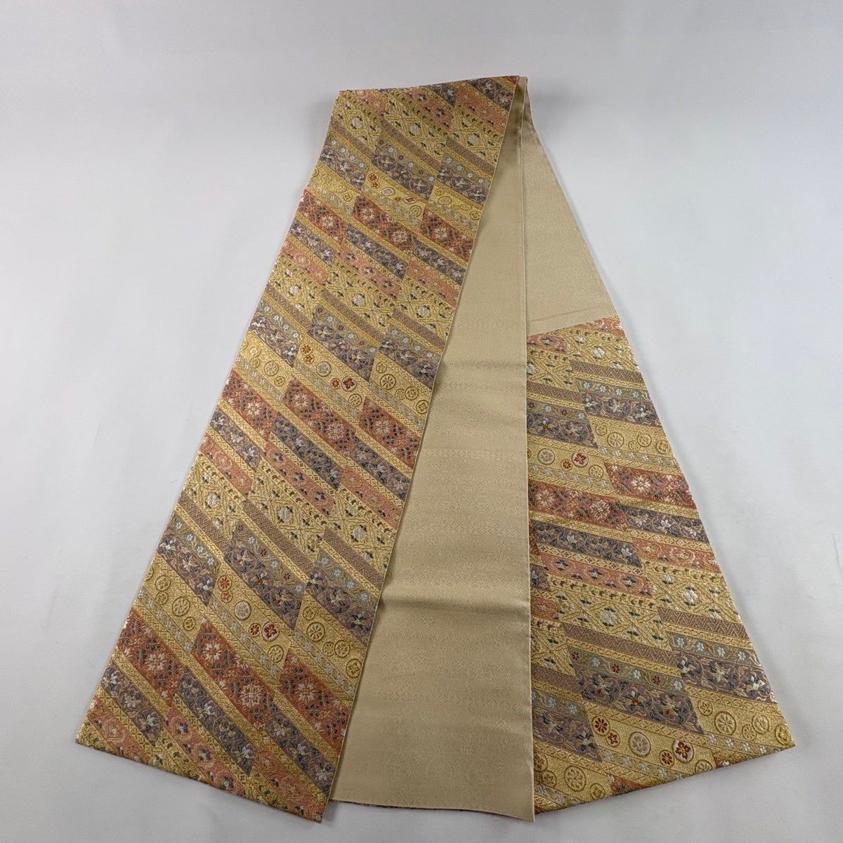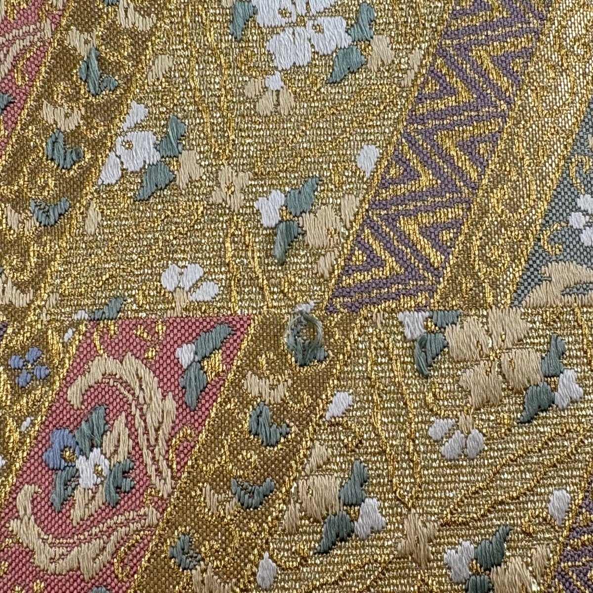 袋帯 秀品 菱 幾何学模様 箔 金色 六通 正絹