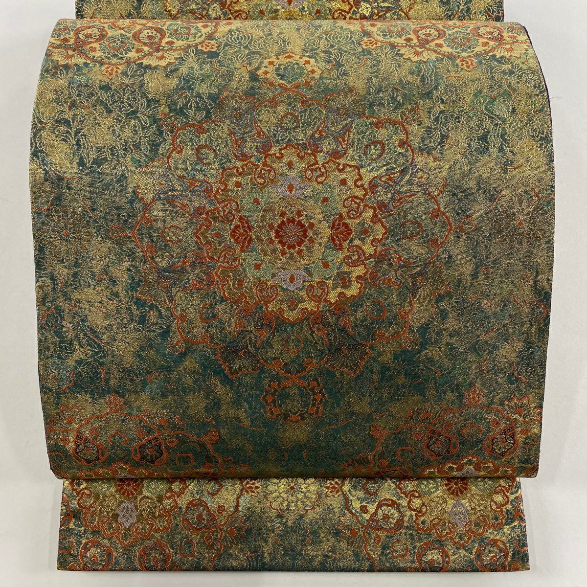 30%OFF 【美品】 袋帯 名品 落款あり 豊田宏一 装飾更紗青海 箔 金糸 金色 六通 正絹 K30