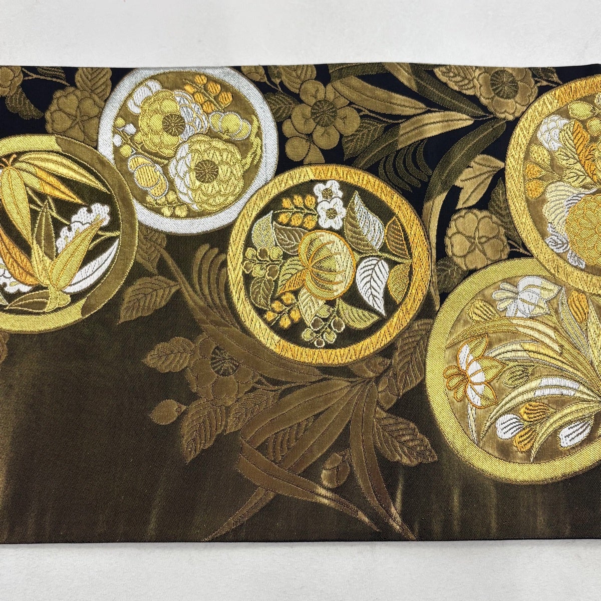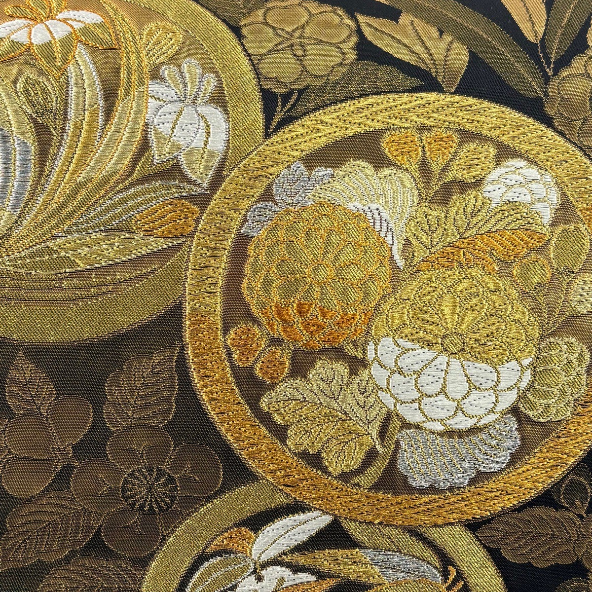 袋帯 秀品 丸文 草花 唐織 金銀糸 金色 六通 正絹