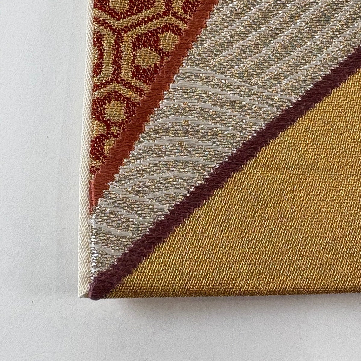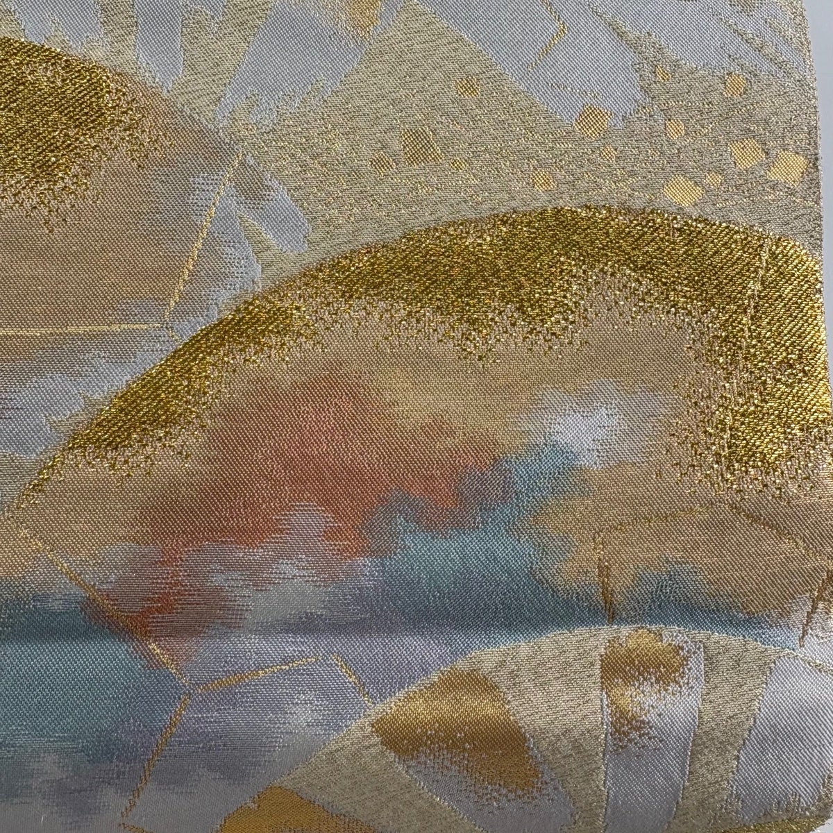 【美品】 袋帯 秀品 幾何学 箔 金色 六通 正絹