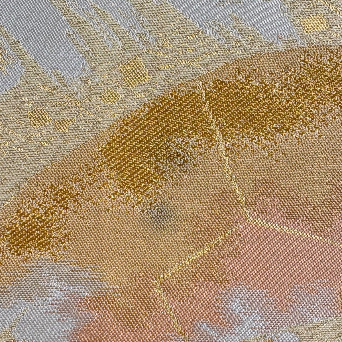 袋帯 秀品 振袖向き 幾何学 箔 金色 六通 正絹