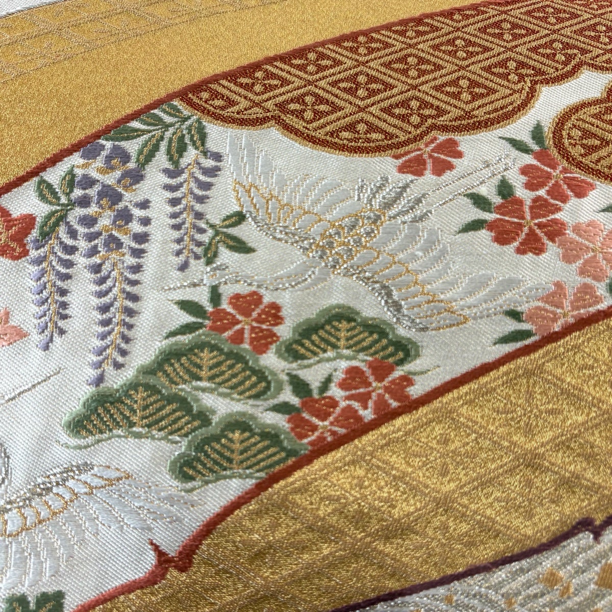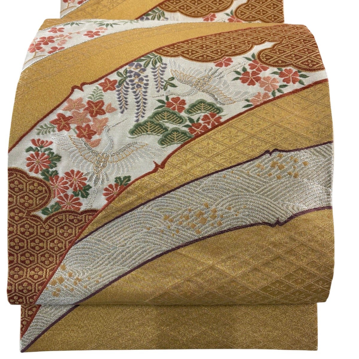 丸帯 逸品 色紙 花鳥 金糸 箔 金色 お太鼓柄 正絹