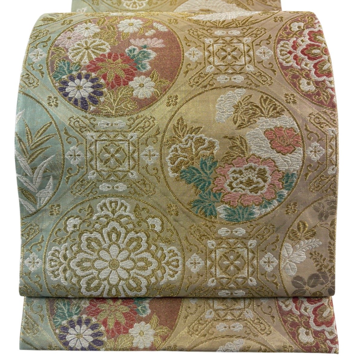 袋帯 名品 色紙 花鳥 唐織 金糸 金色 お太鼓柄 正絹