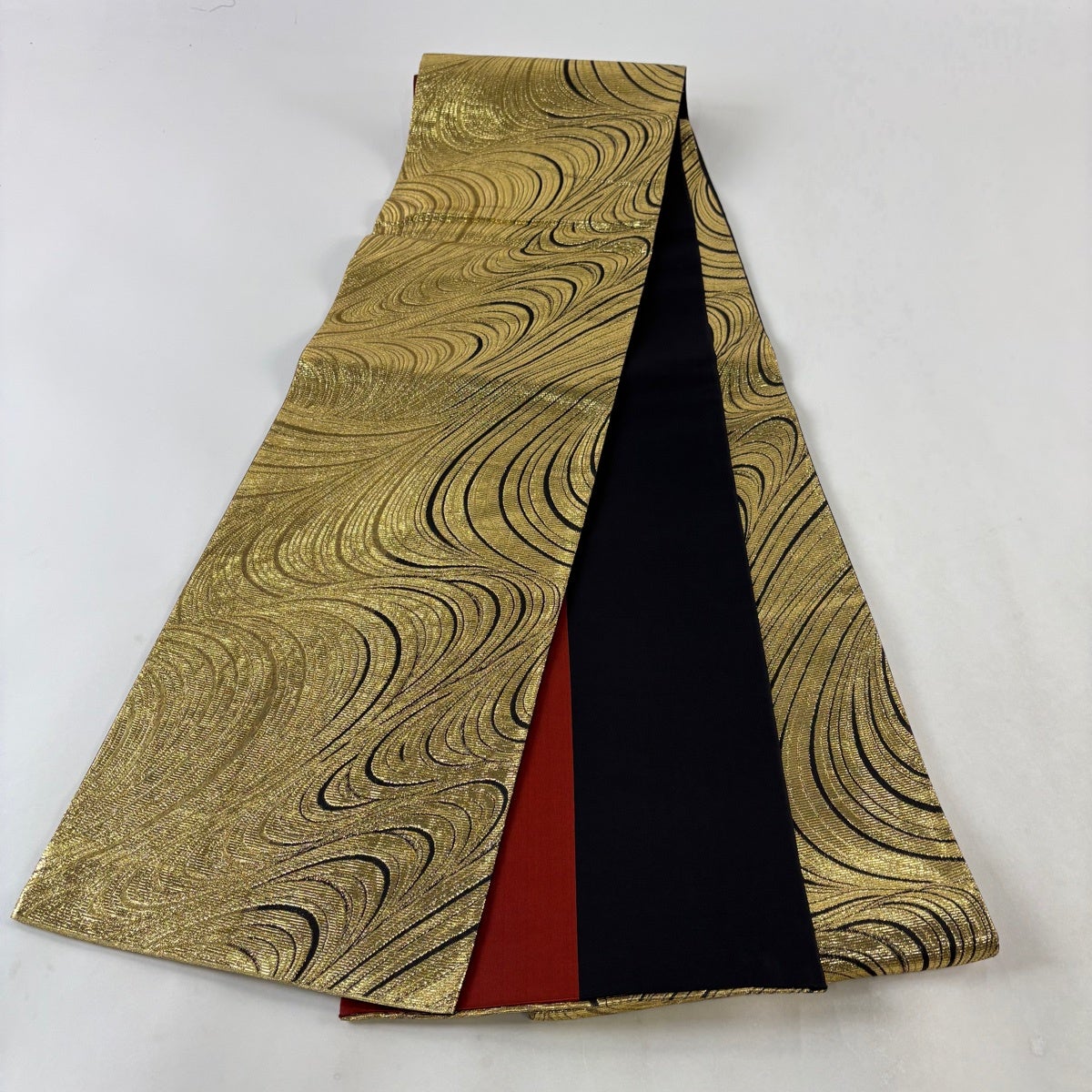 【美品】 袋帯 秀品 波 波頭 金糸 箔 金色 六通 正絹