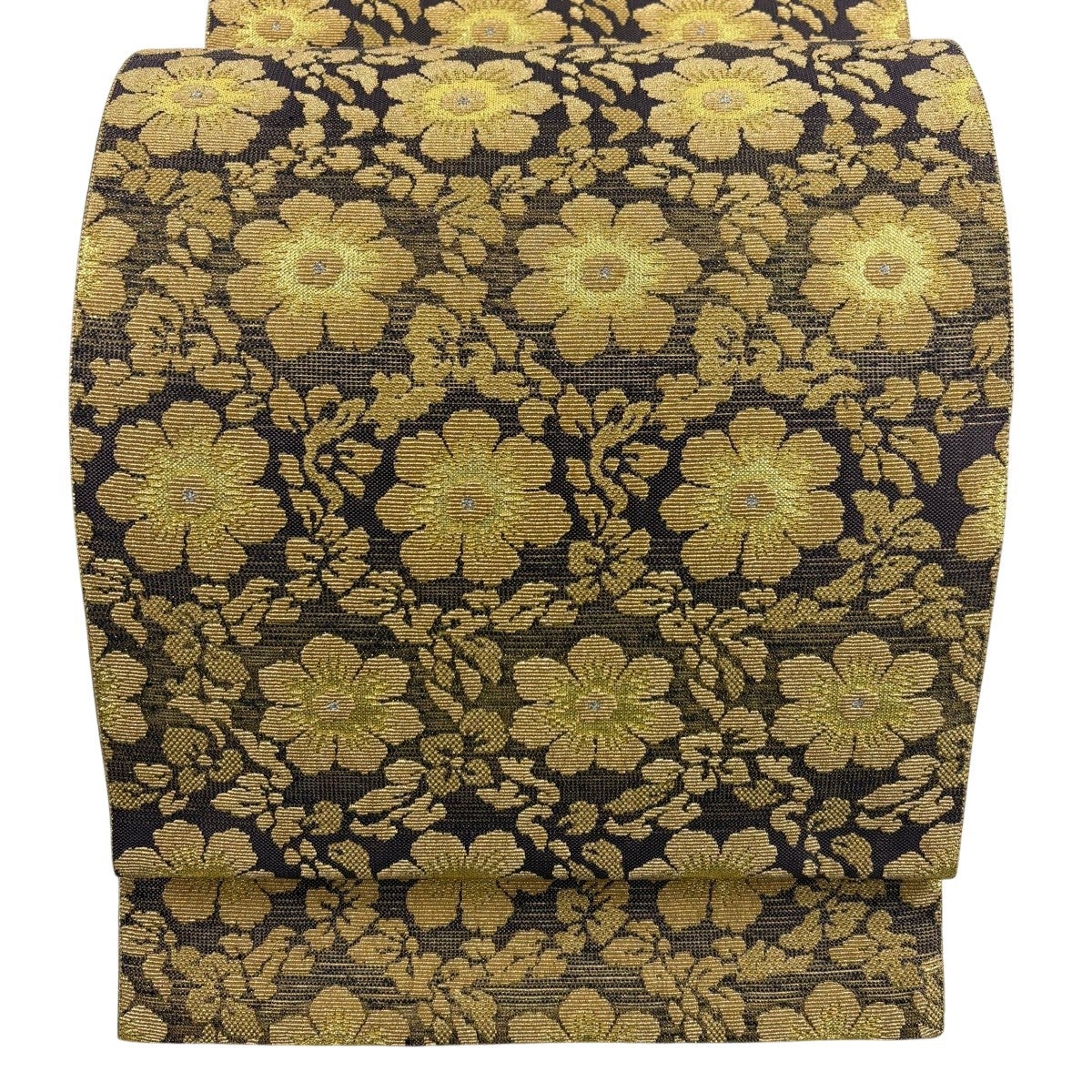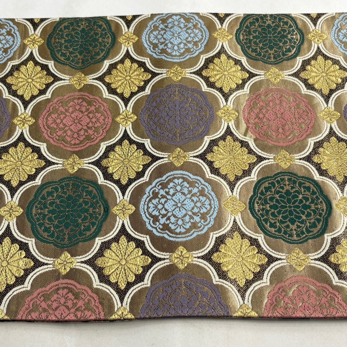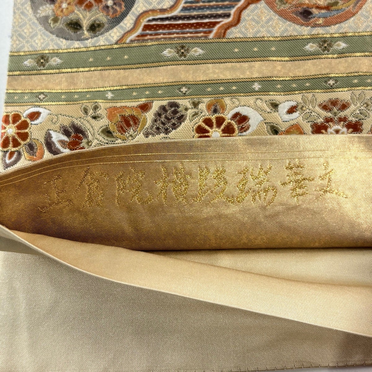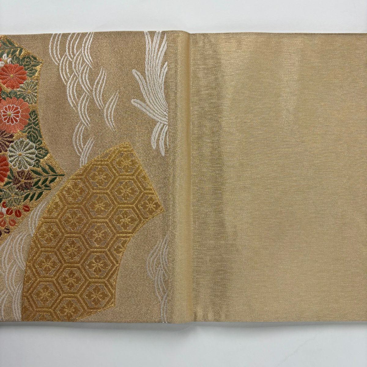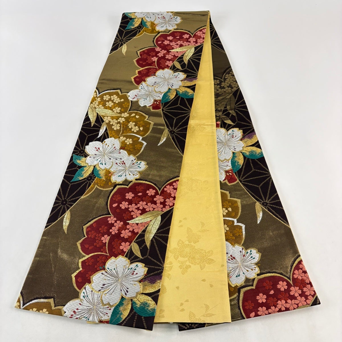 50%OFF 袋帯 秀品 花びら 幾何学 金糸 金茶 全通 正絹 K50