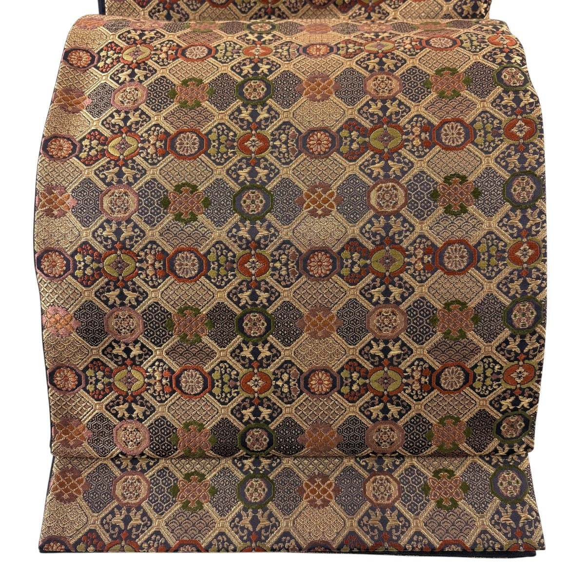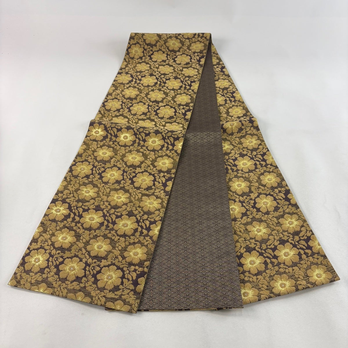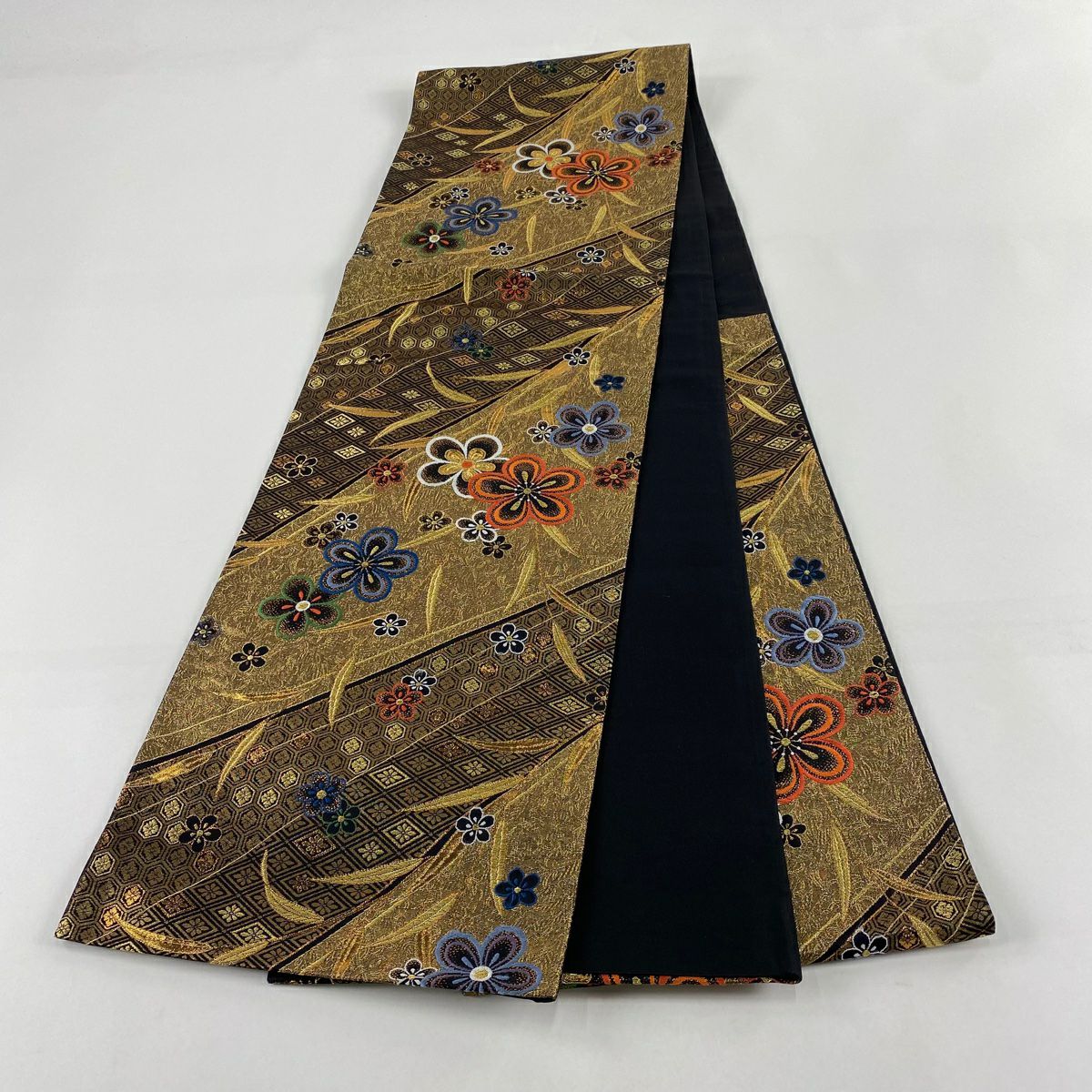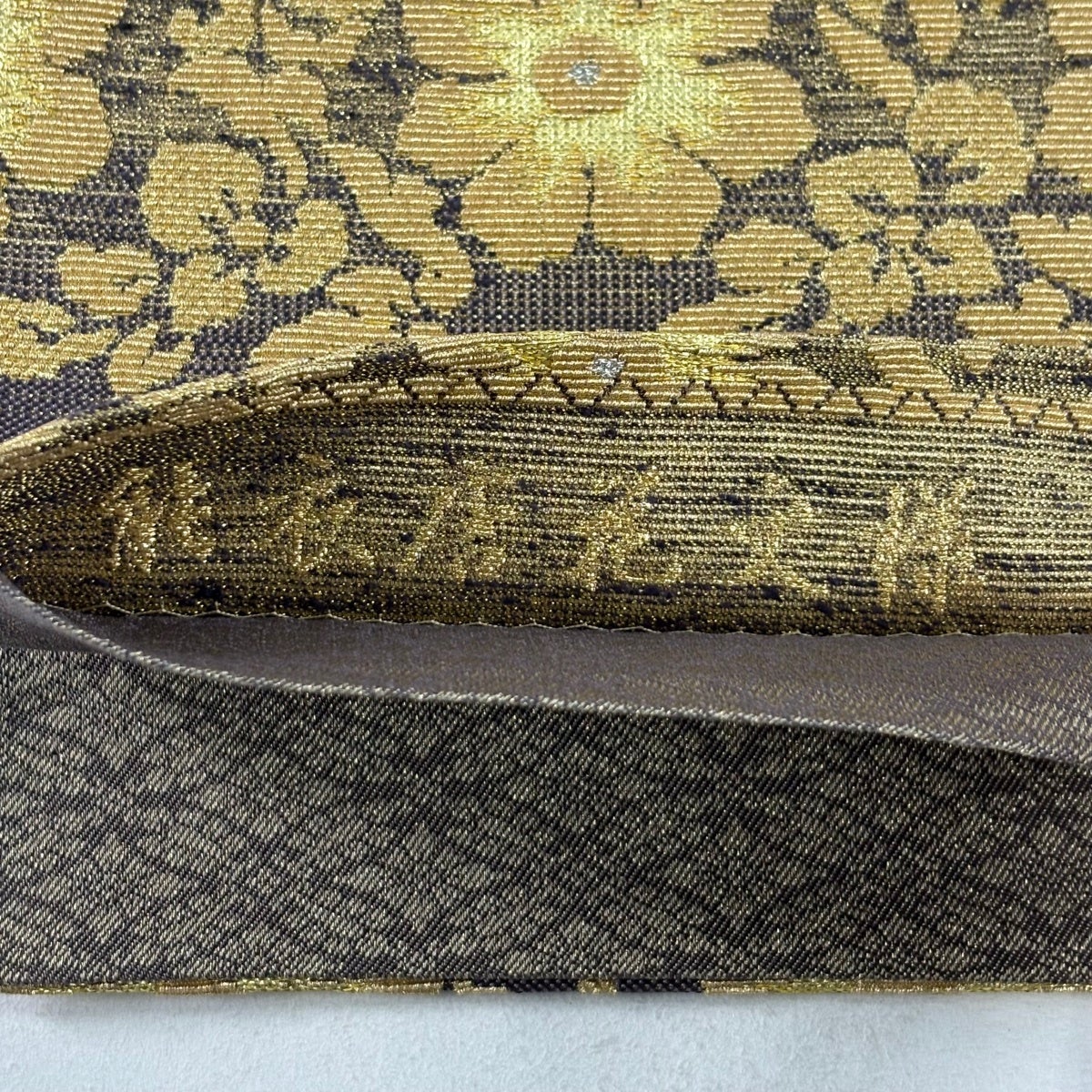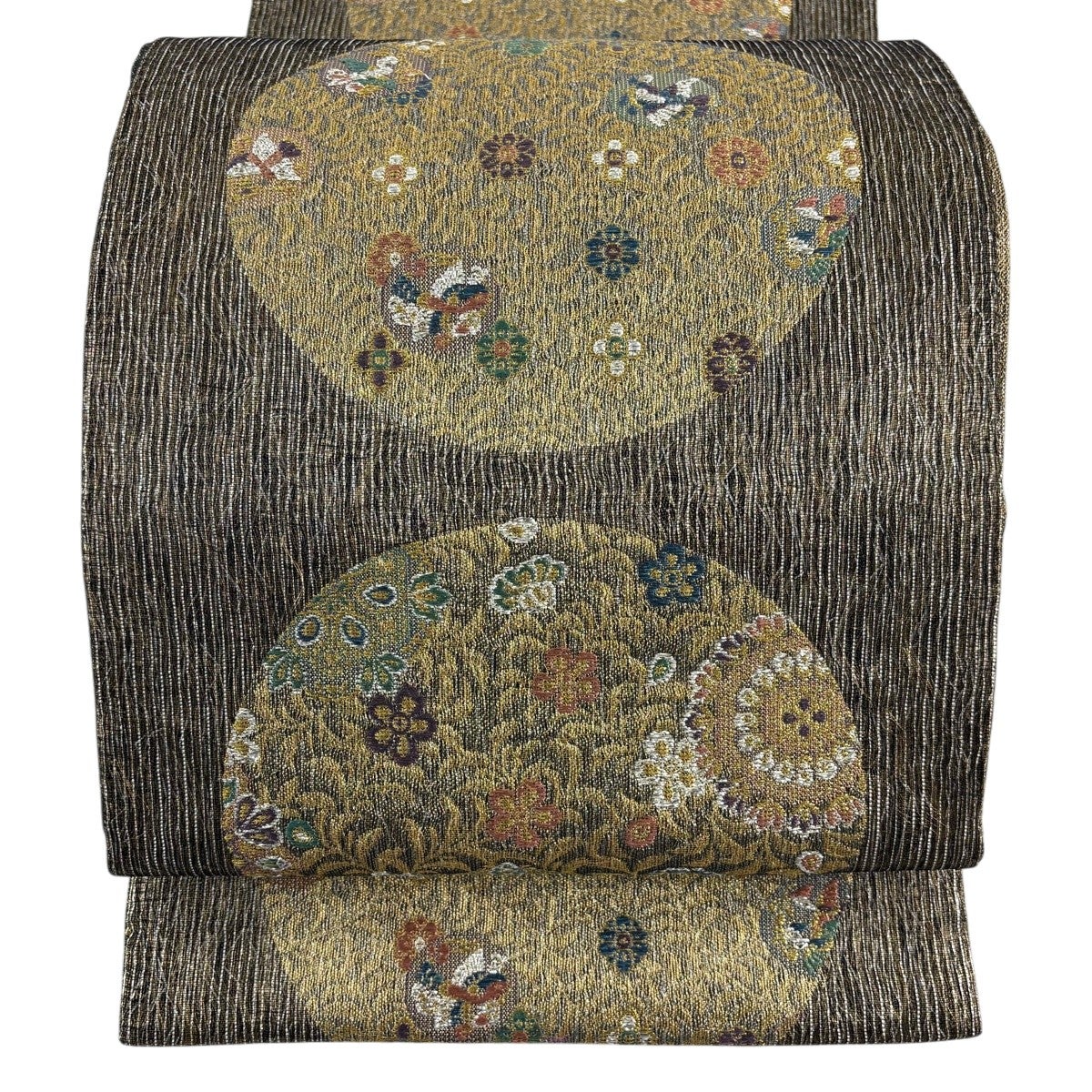 50%OFF 袋帯 秀品 花びら 幾何学 金糸 金茶 全通 正絹 K50