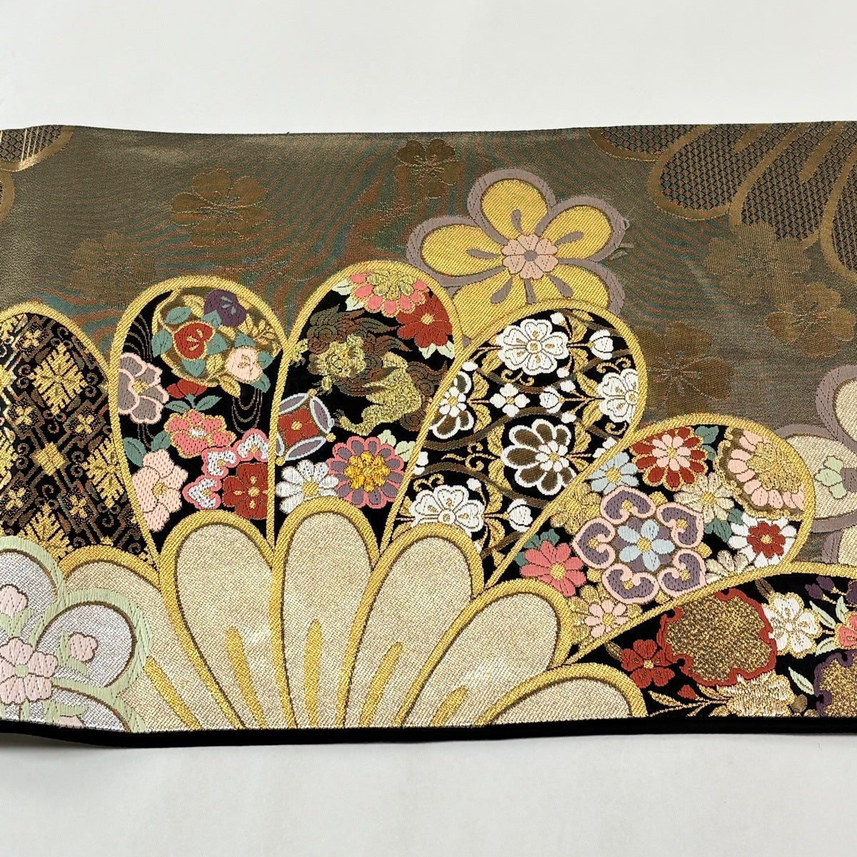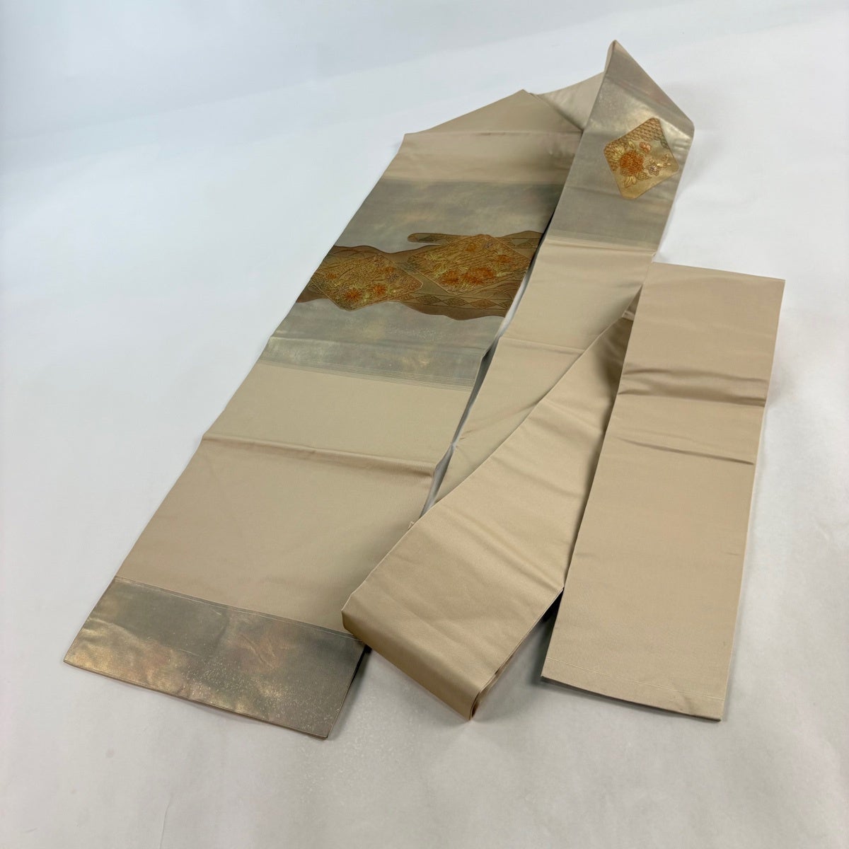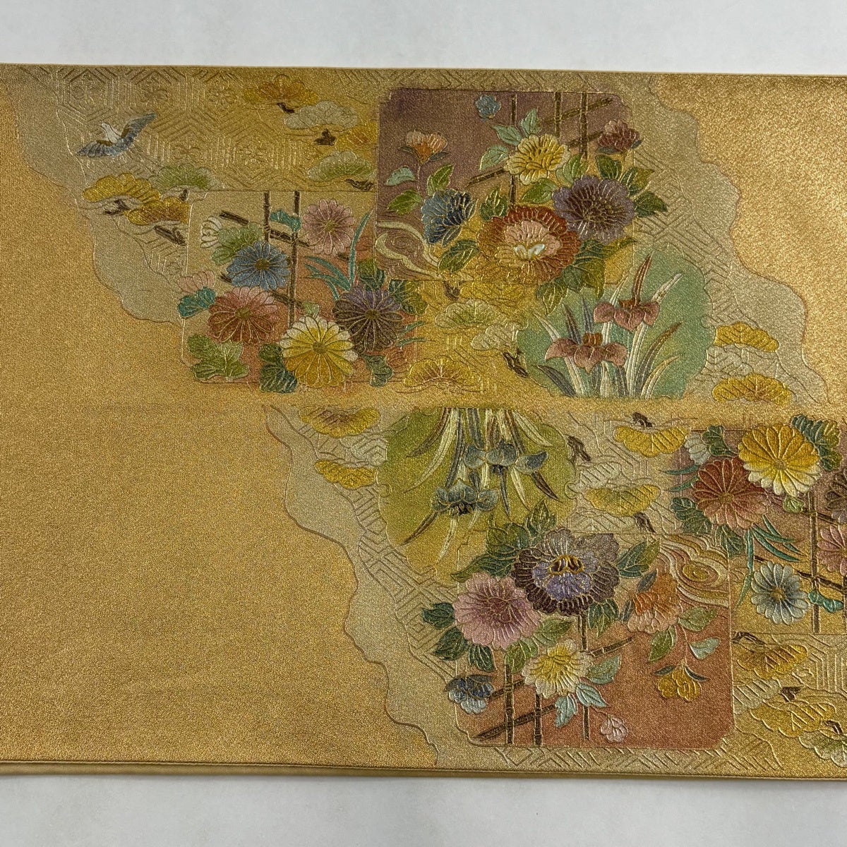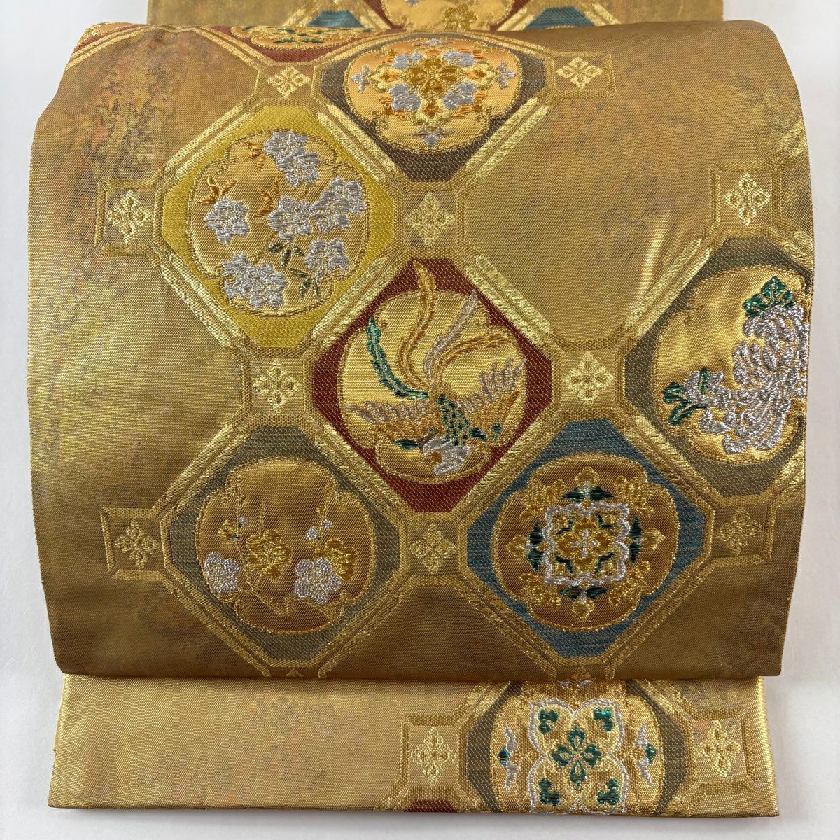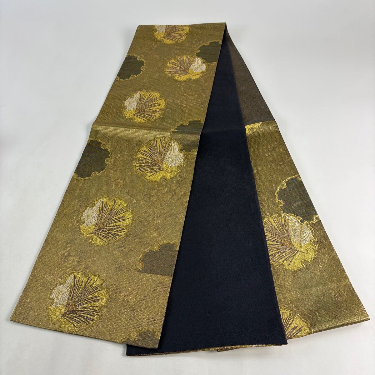 50%OFF 袋帯 秀品 花びら 幾何学 金糸 金茶 全通 正絹 K50