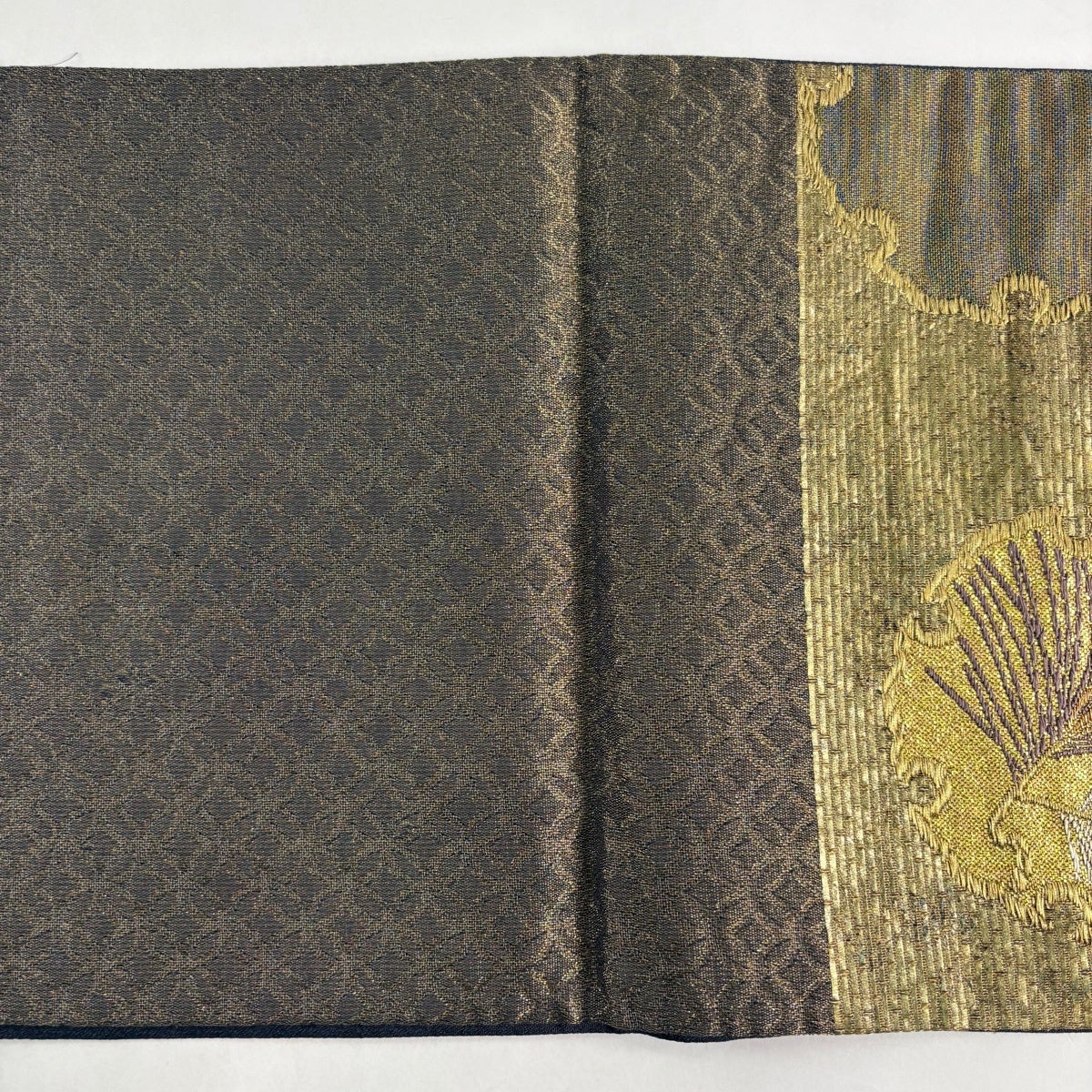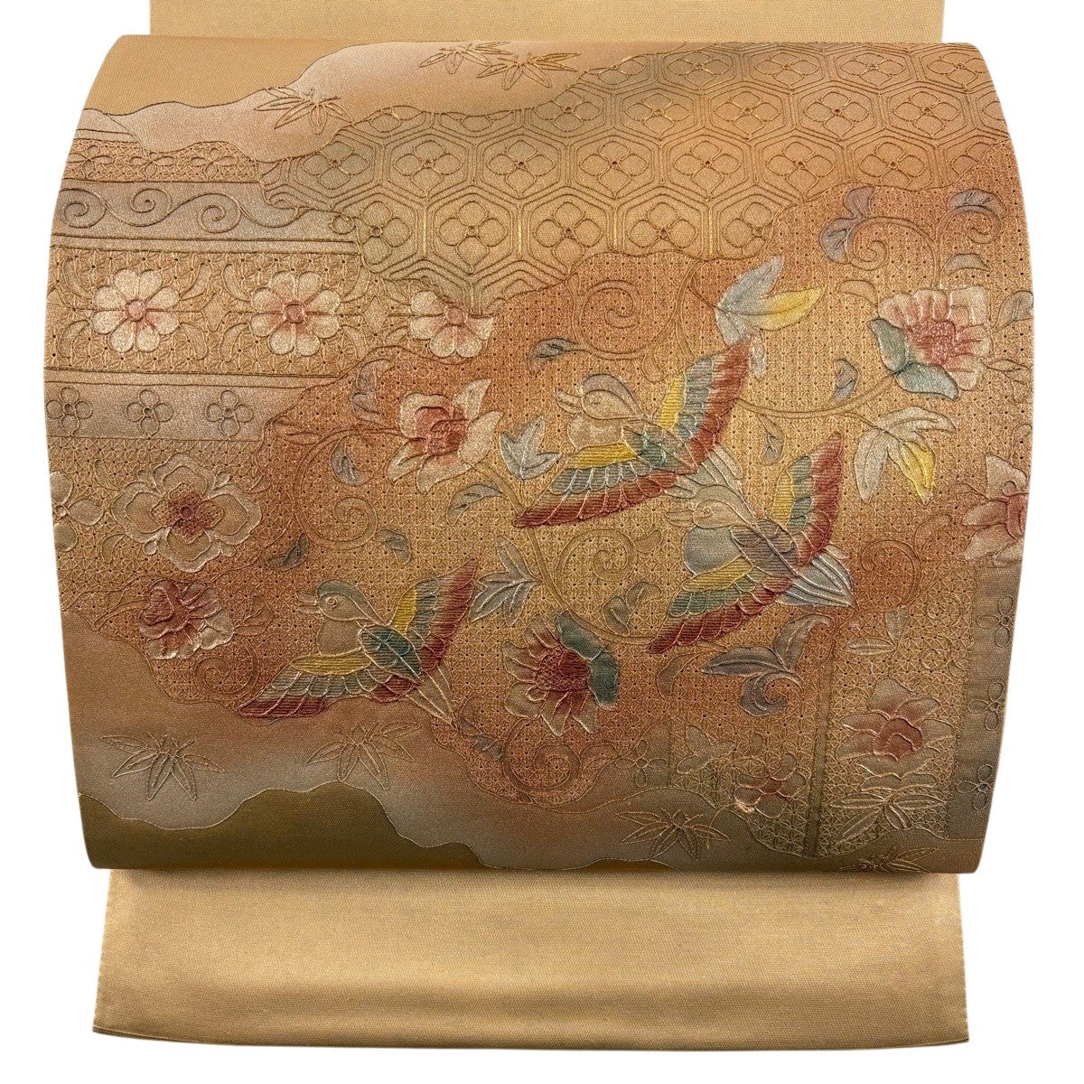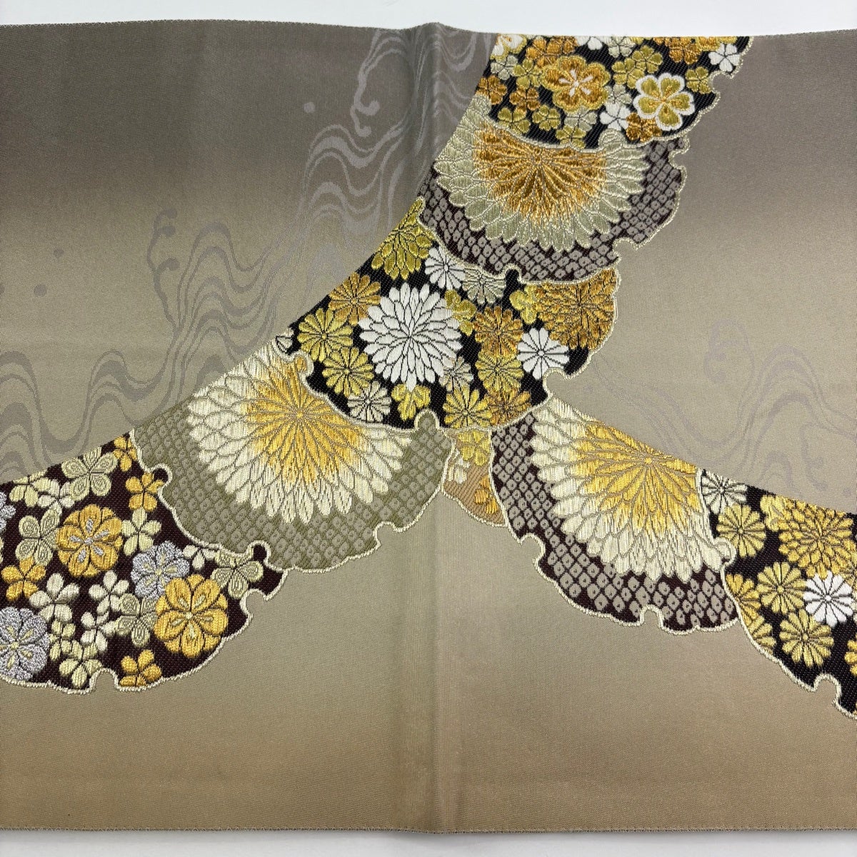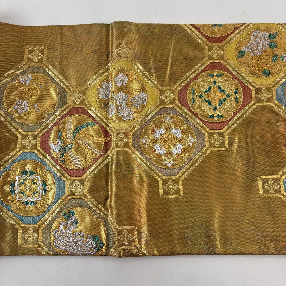 50%OFF 袋帯 秀品 花びら 幾何学 金糸 金茶 全通 正絹 K50