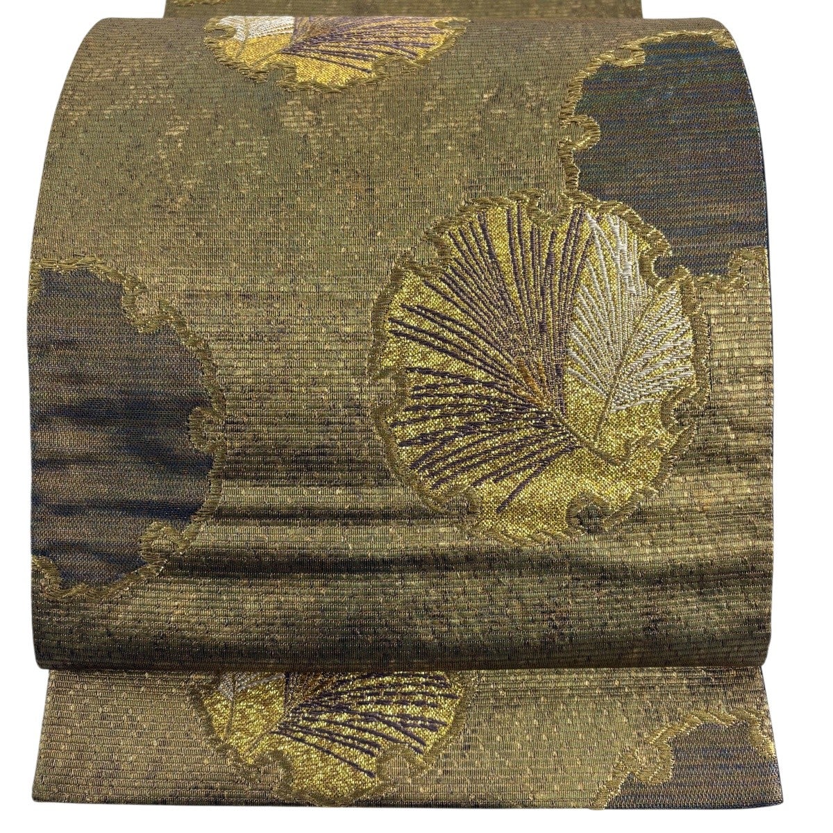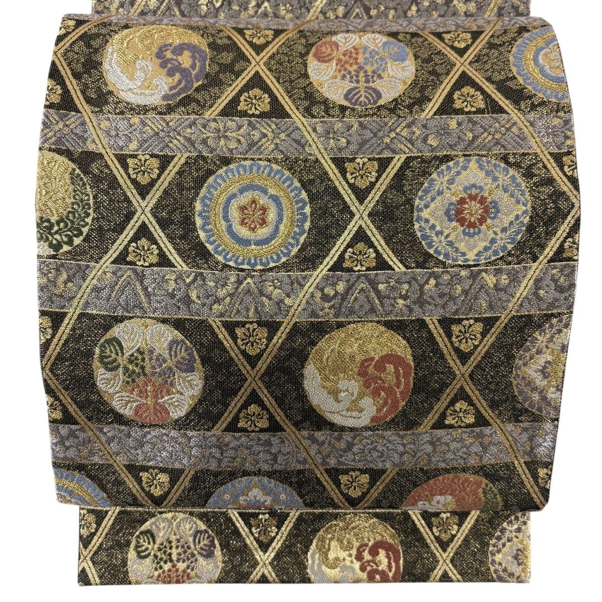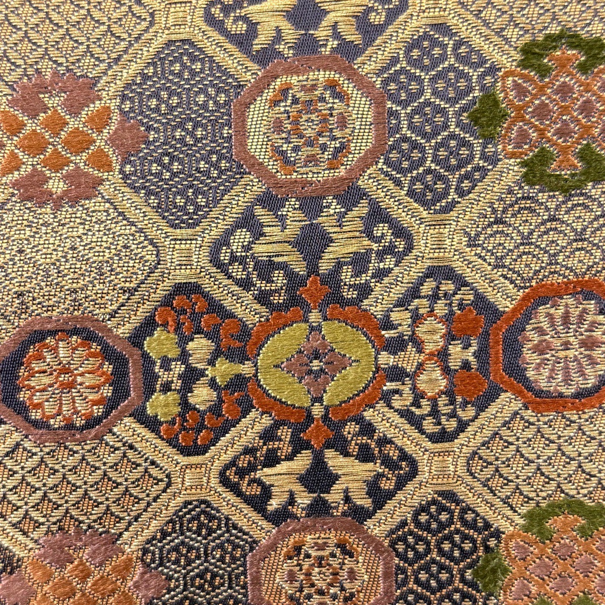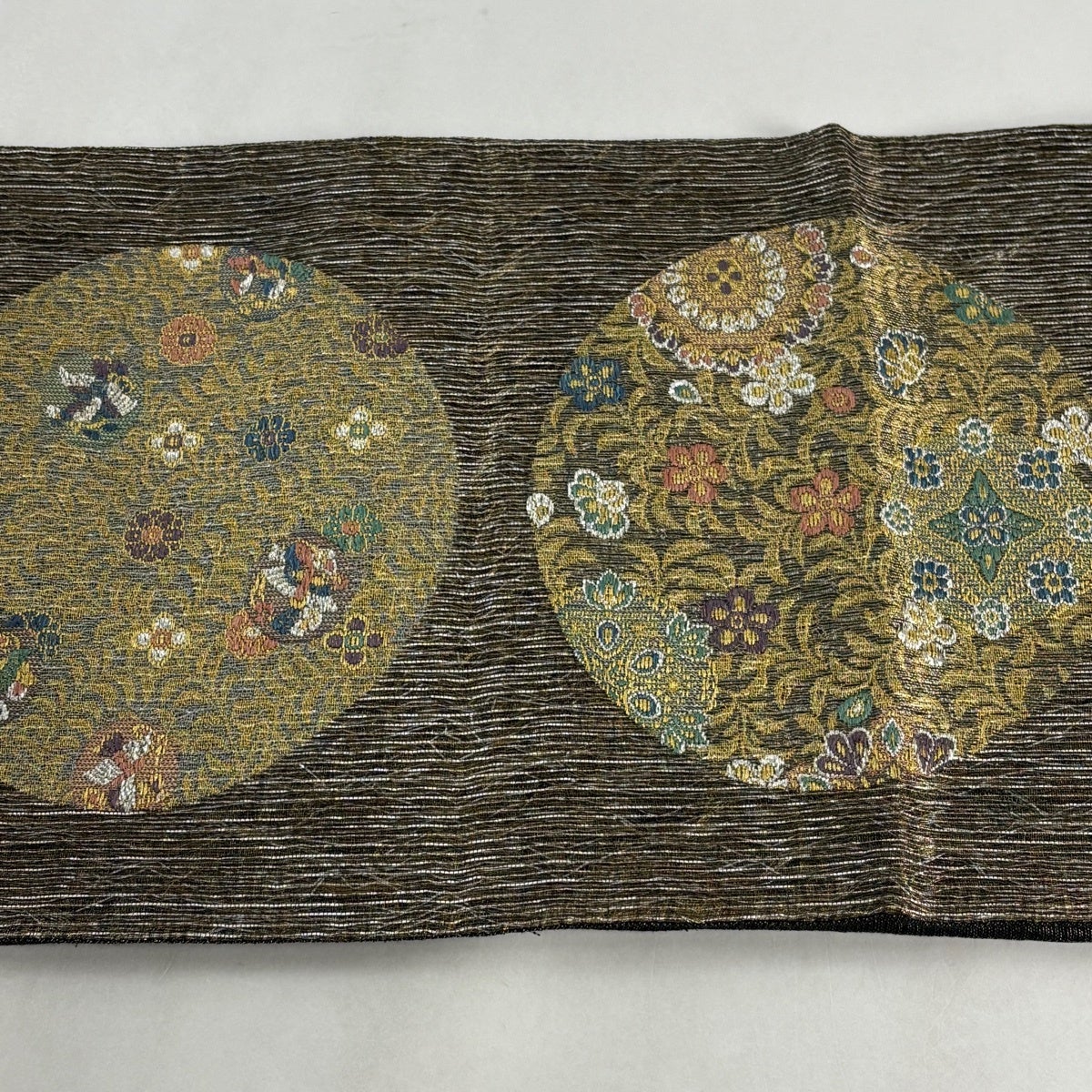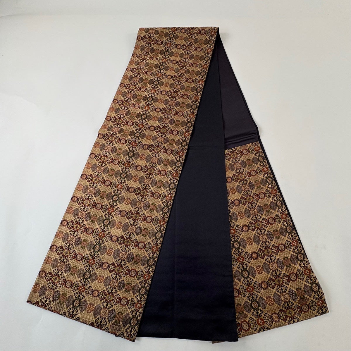 50%OFF 袋帯 秀品 花びら 幾何学 金糸 金茶 全通 正絹 K50