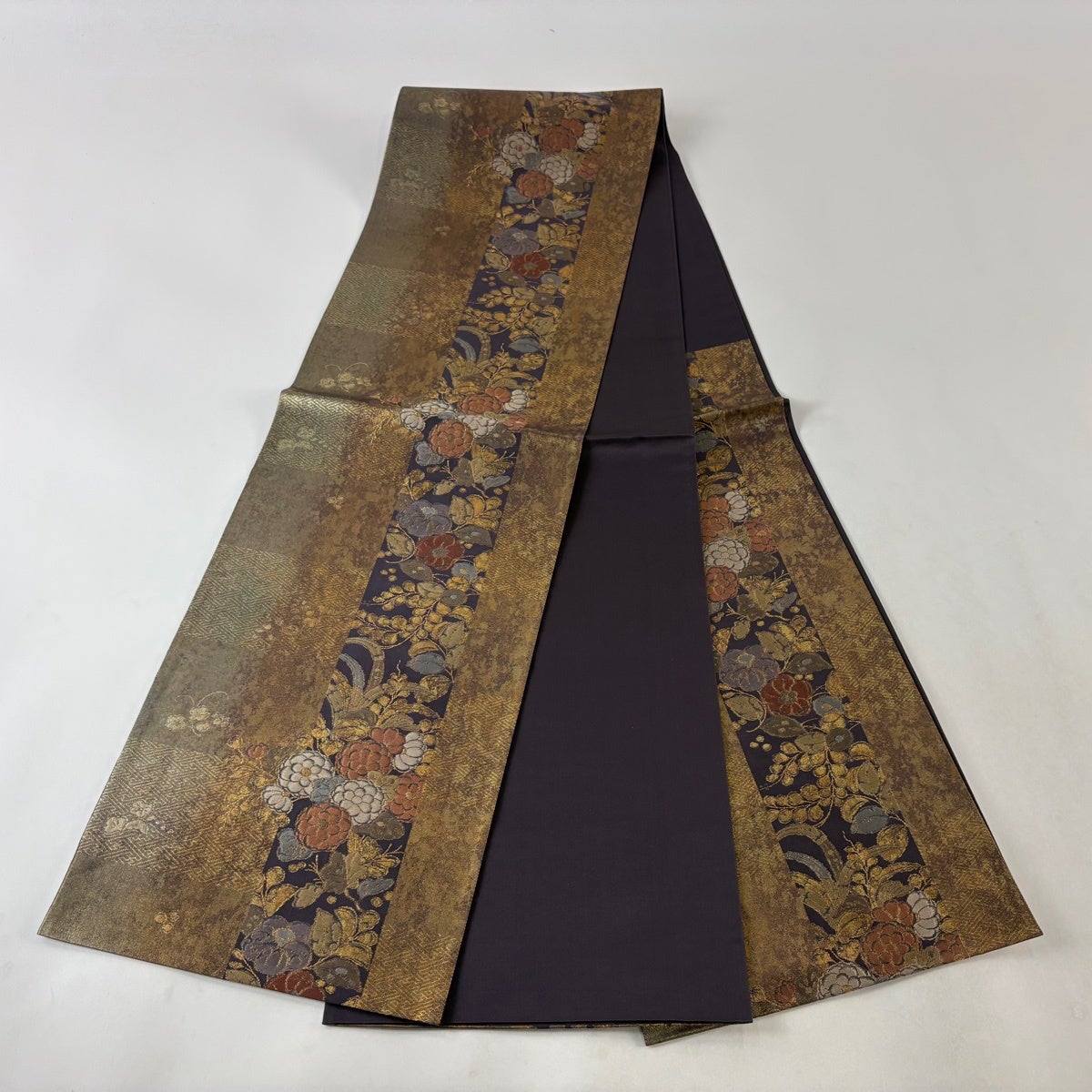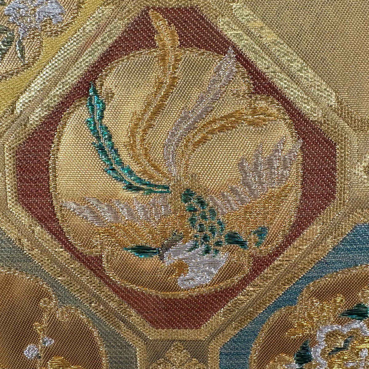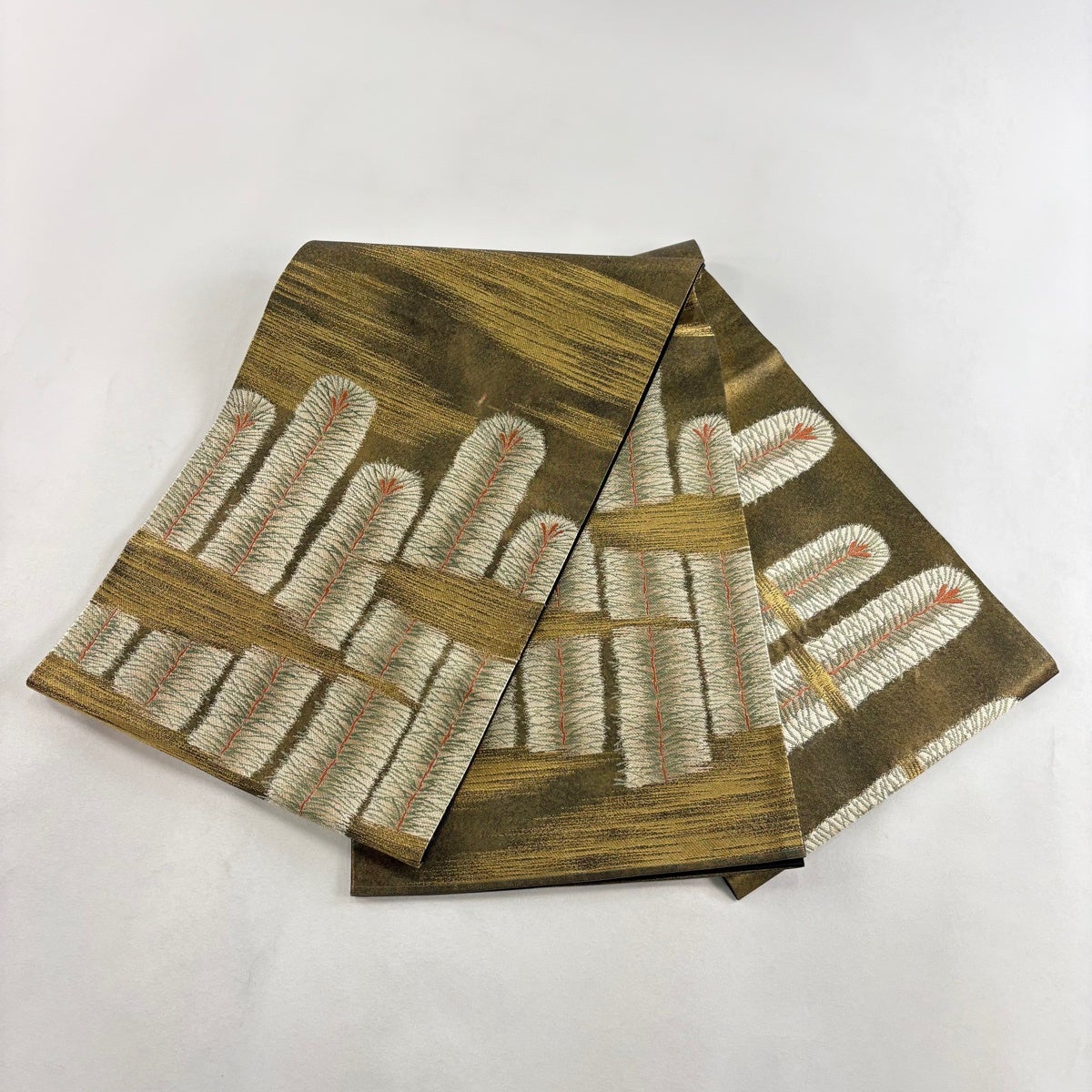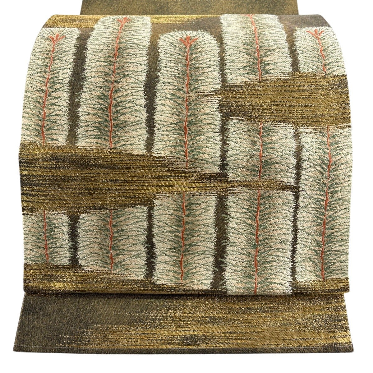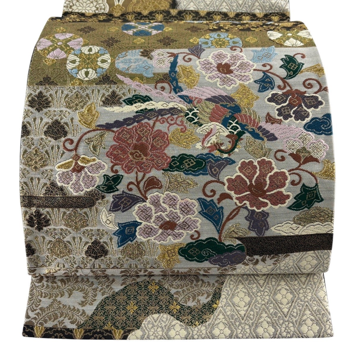 50%OFF 袋帯 秀品 花びら 幾何学 金糸 金茶 全通 正絹 K50