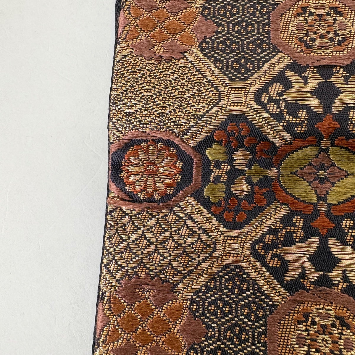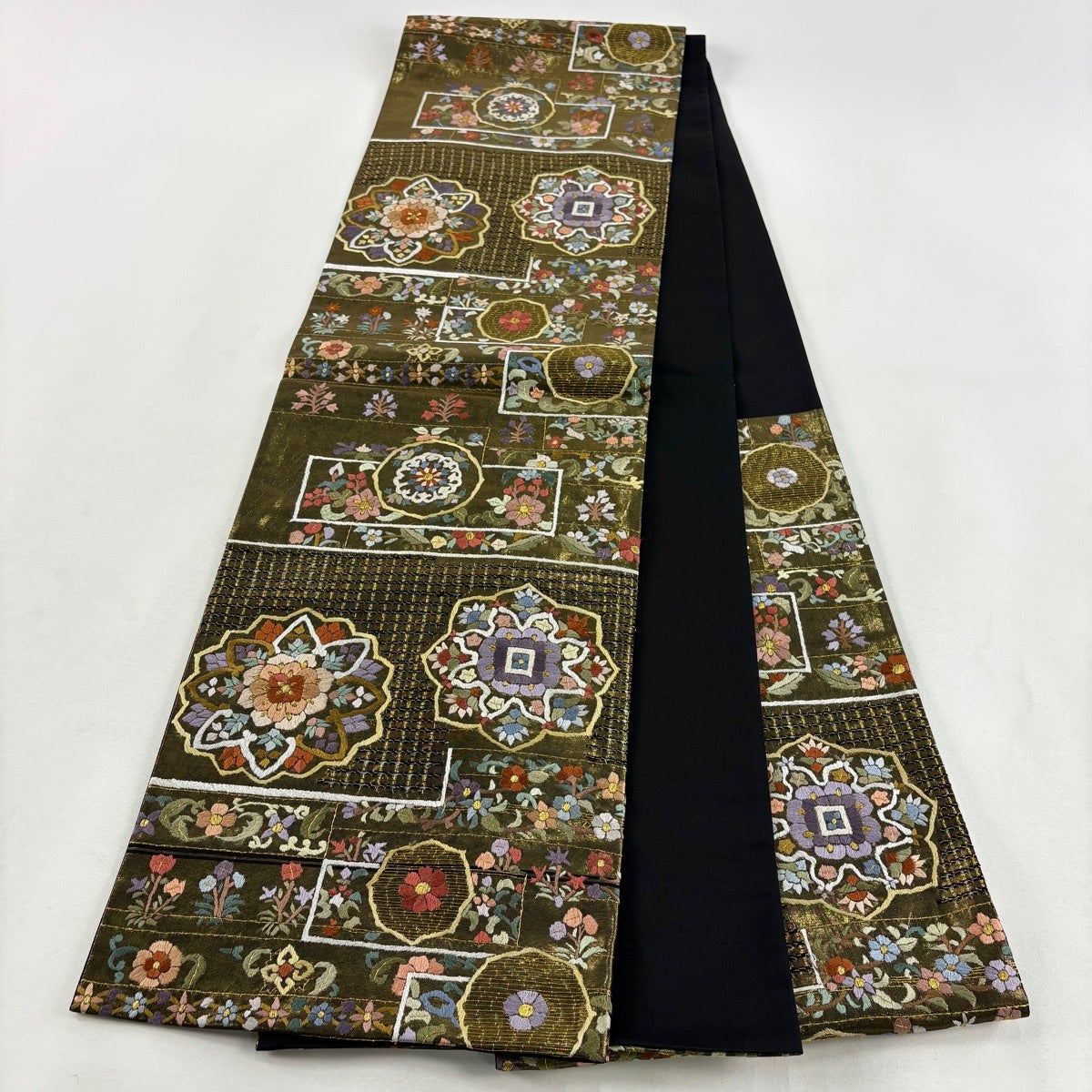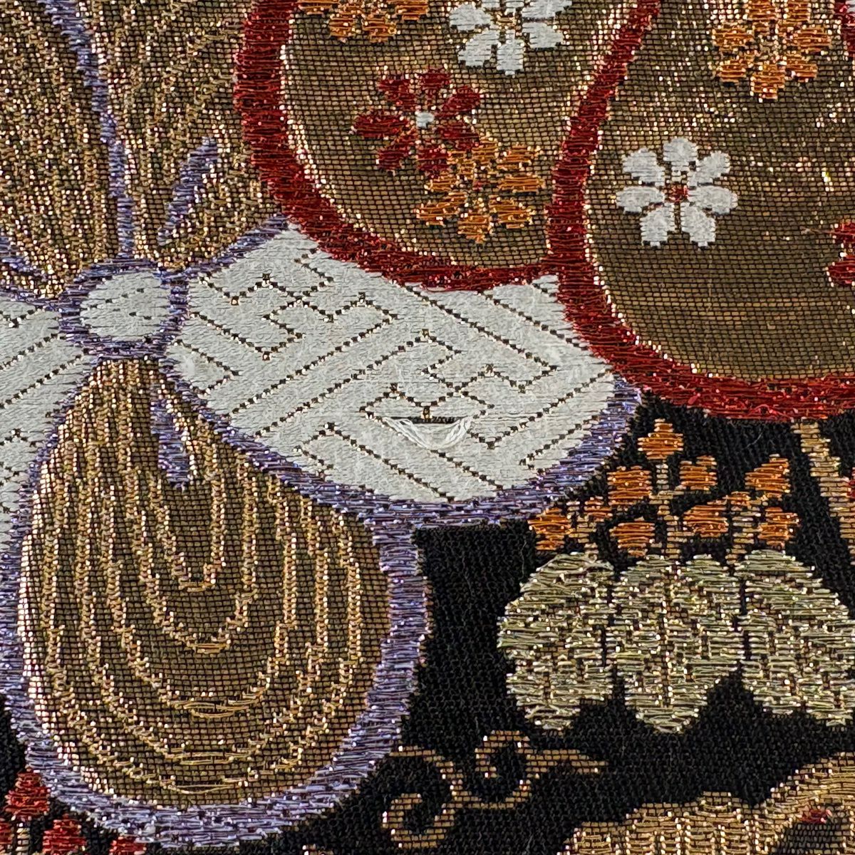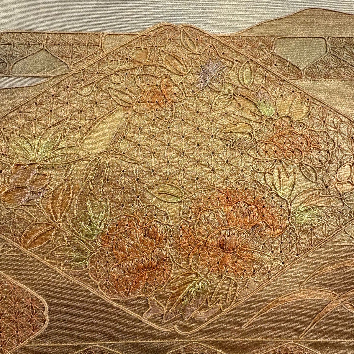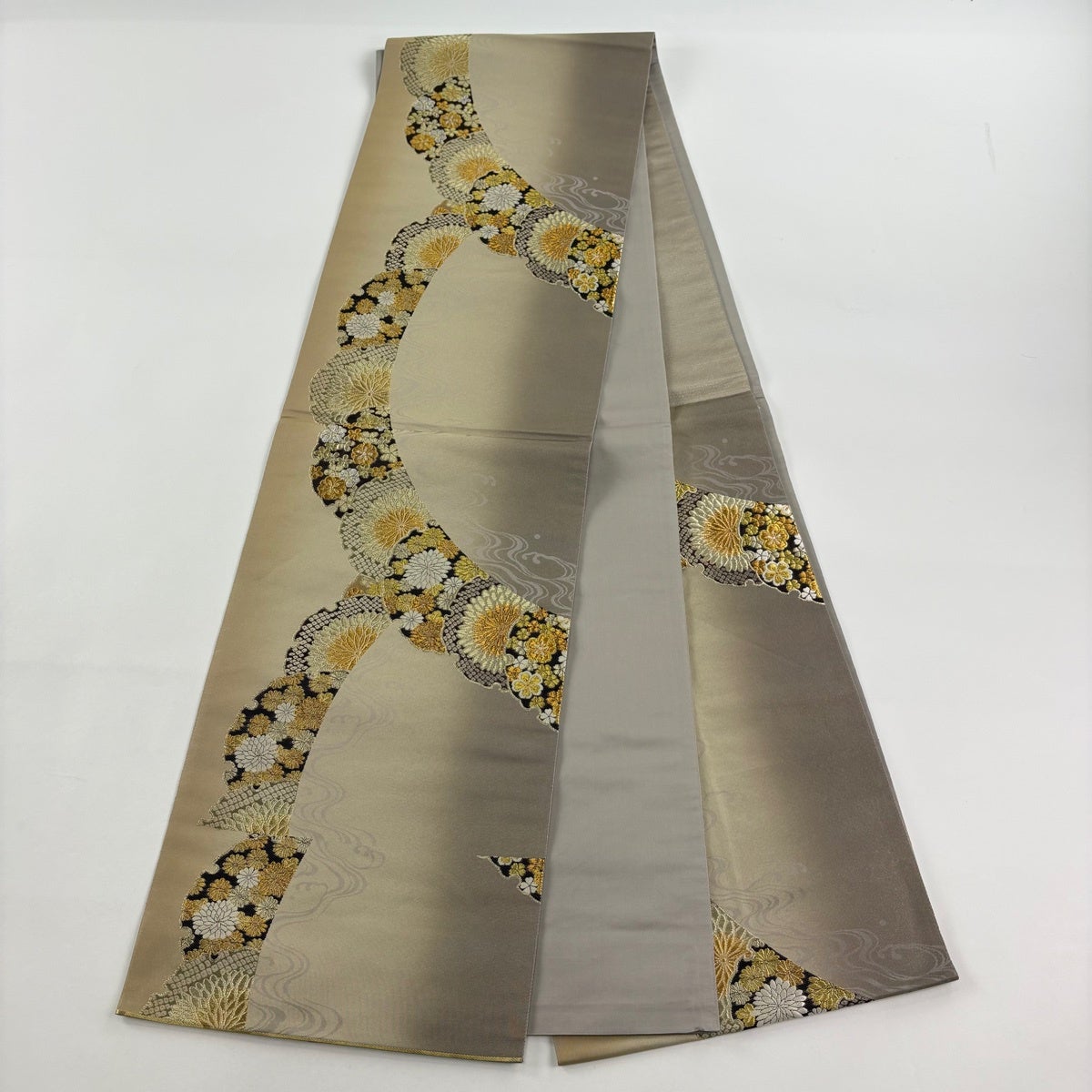 50%OFF 袋帯 秀品 花びら 幾何学 金糸 金茶 全通 正絹 K50