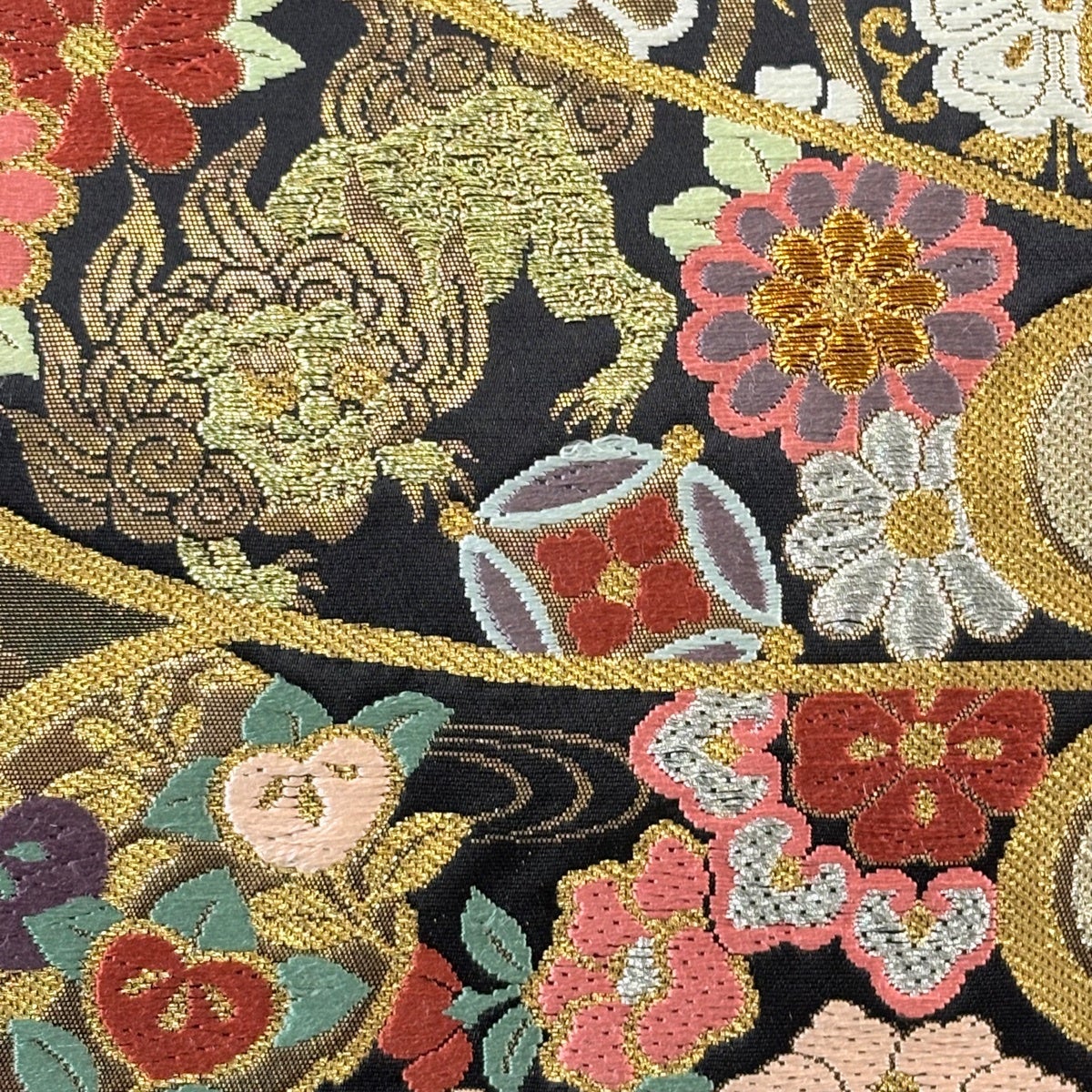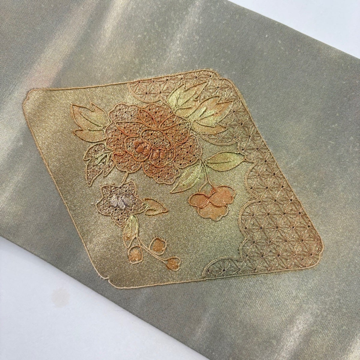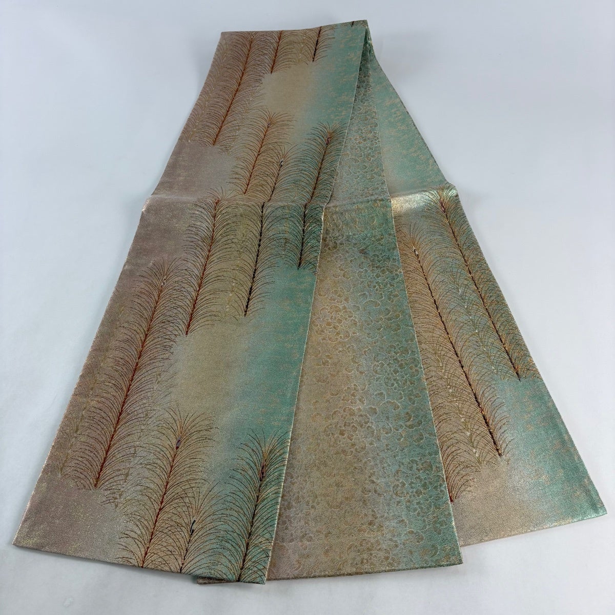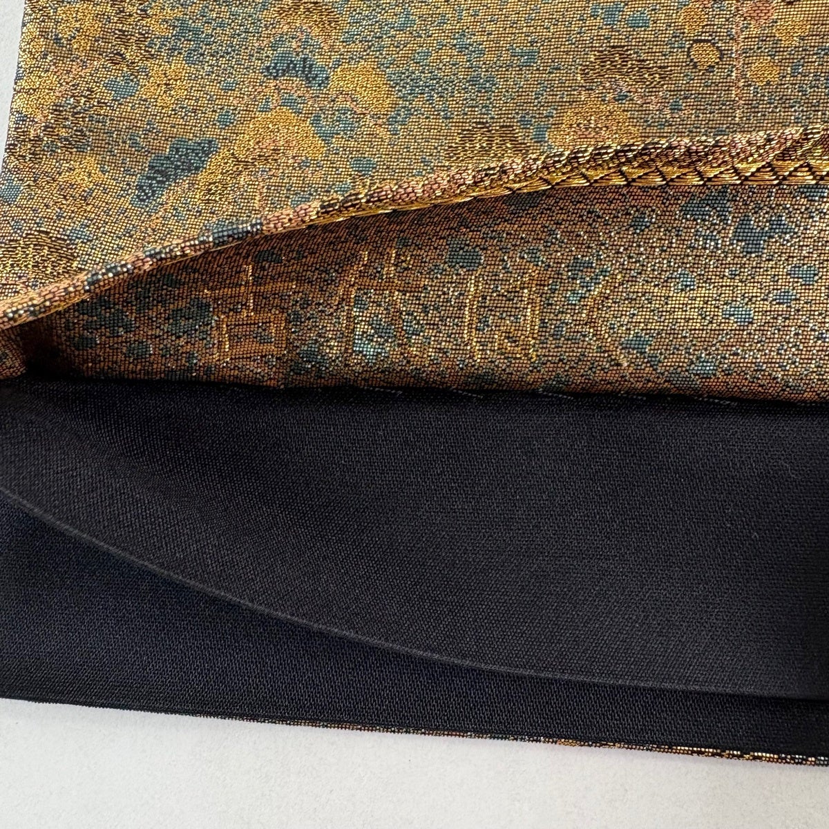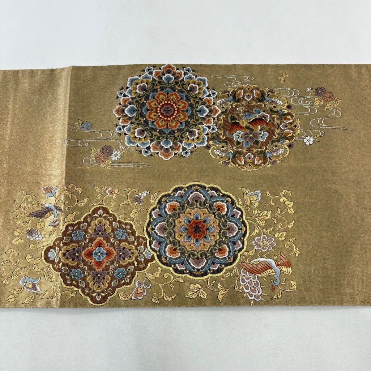 50%OFF 袋帯 秀品 花びら 幾何学 金糸 金茶 全通 正絹 K50